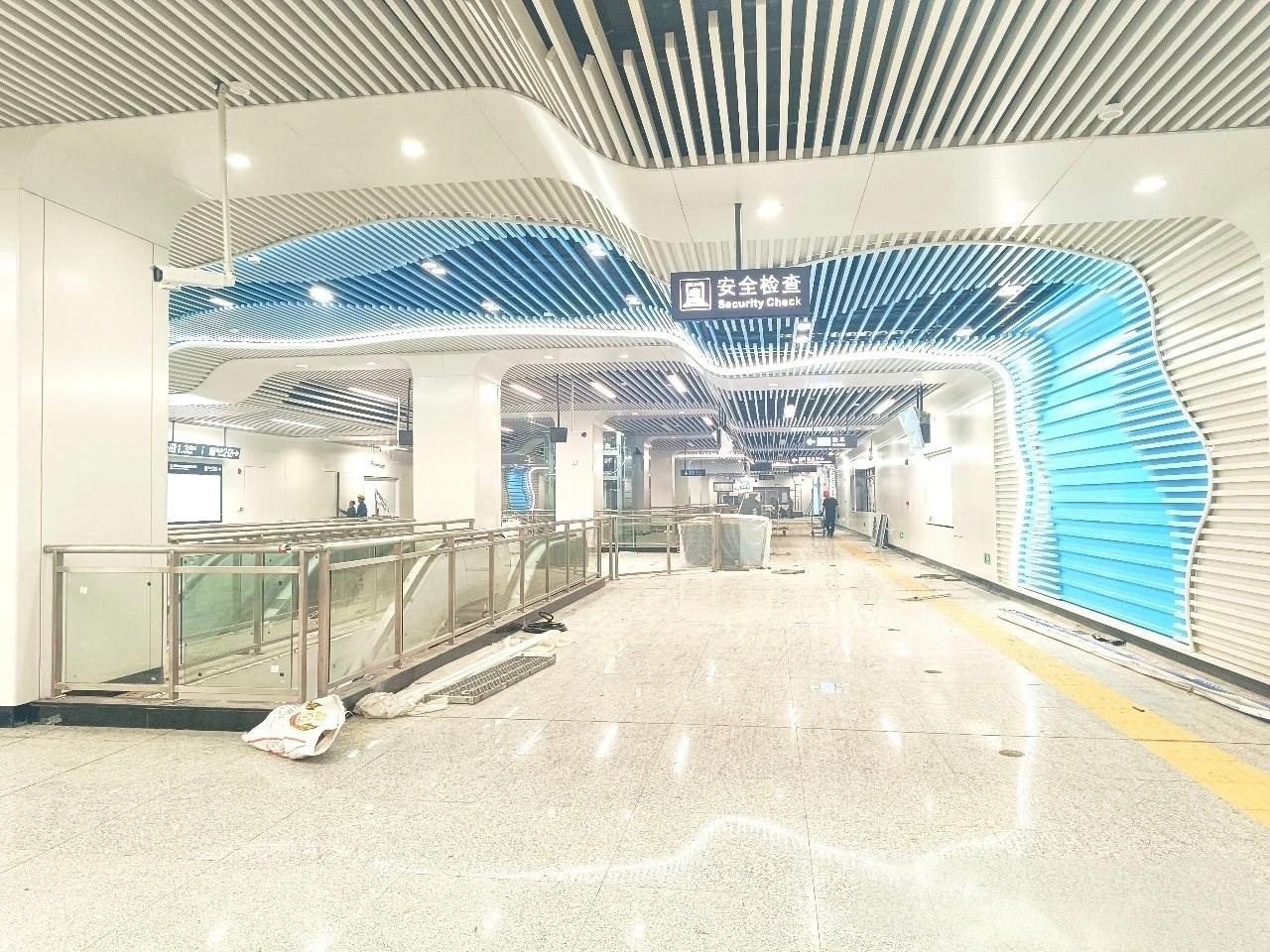 此次亮相的莫家洲站,整体建设品质亮眼,站内站外实景兼具实用性与美观度。车站5个地面出入口已全部建成,整体外观简约大气;地下负一层站厅层内,闸机出入口、客服中心、全线网导向标识系统均已安装调试到位,空间布局清晰合理;负二层站台层内,乘车指引标识、自动扶梯、无障碍直升梯等配套设施全部布设完成,全站点功能设施已基本达到运营筹备标准,尽显长沙地铁高品质的建设理念。