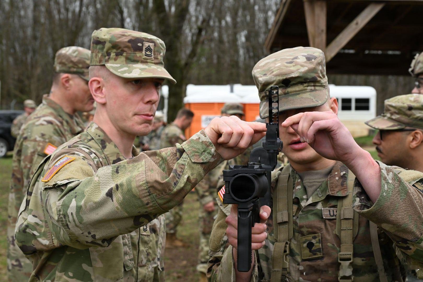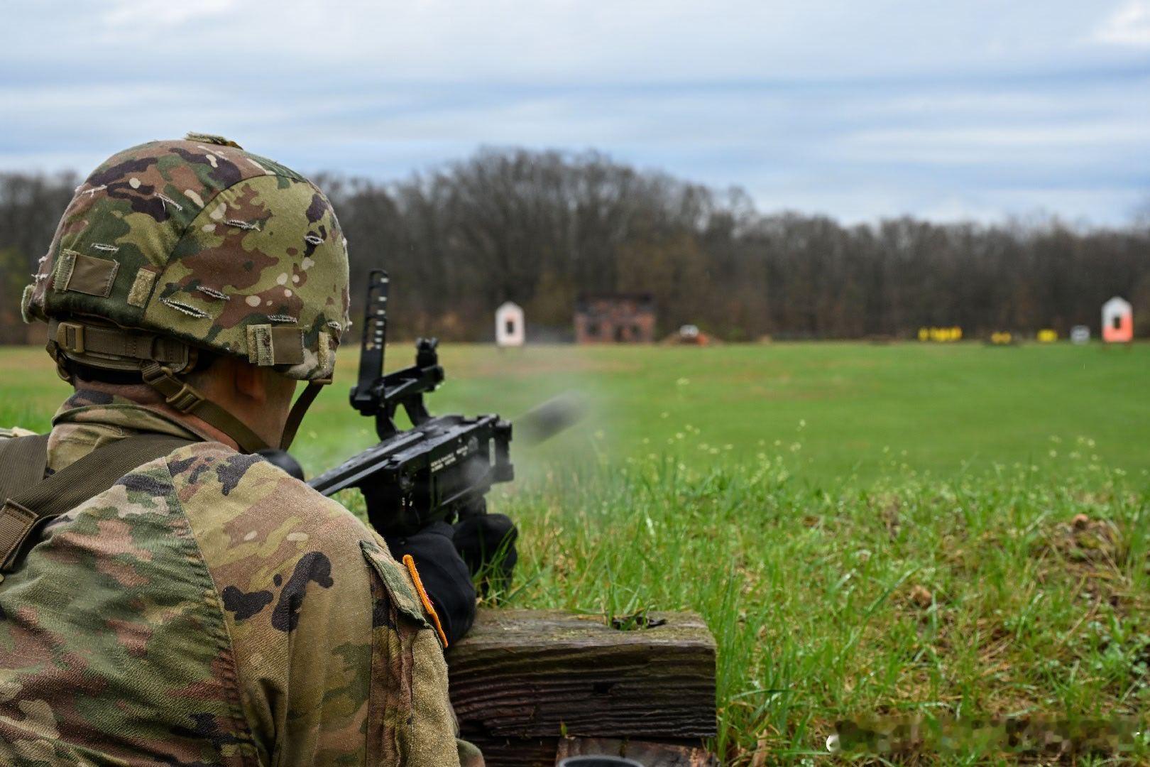 2026年4月15日,密歇根州奥古斯塔,卡斯特堡训练中心。密歇根国民警卫队在密歇根国民警卫队最佳勇士竞赛中发射M320榴弹发射器。