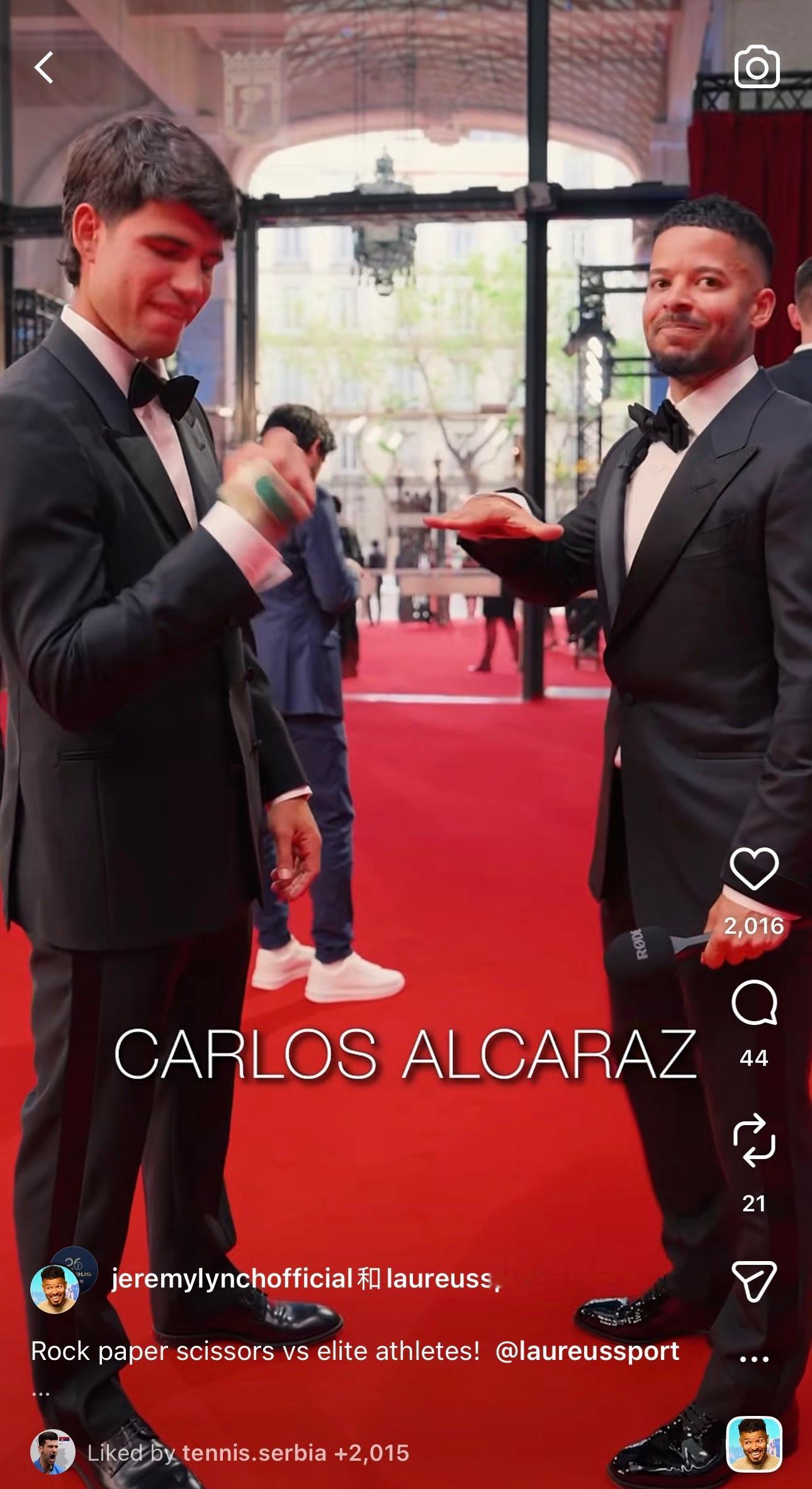 阿尔卡拉斯昨天特别从老家穆尔西亚赶回马德里,参加劳伦斯颁奖晚宴。他也凭借去年的出色表现,拿到最佳男子男运动员。