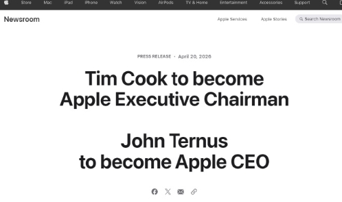 一觉睡醒,库克发长文宣布9月1日辞任苹果CEO,改任执行董事长了,苹果现任硬件工程高级副总裁John Ternus将接任CEO,苹果芯片之父、原硬件技术高级副总裁Johny Srouji将接替John Ternus,出任首席硬件官。
