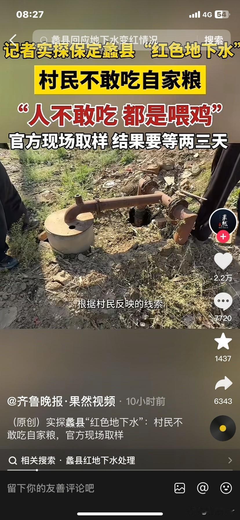 最近看新闻看到河北蠡县地下水变红这事,越想越让人气氛,这是可是关乎到人民的粮食安全问题啊?这么大的事情都没人管