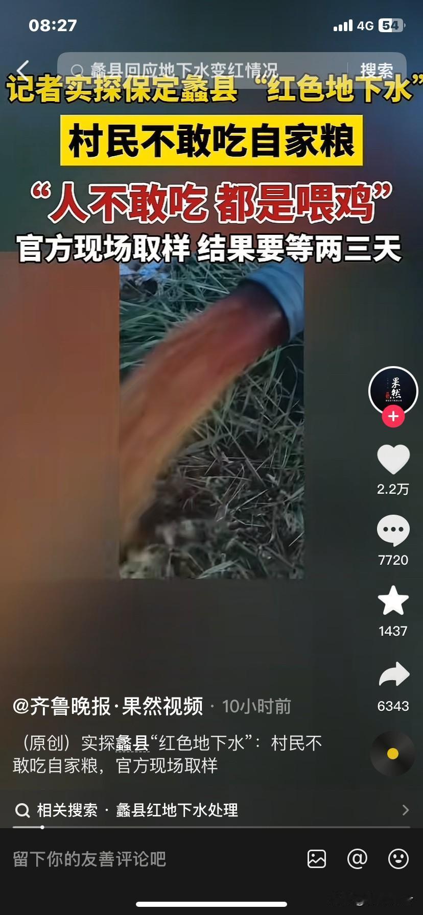 老百姓的耕地、饮用水、粮食安全,从来都不是小事!恳请彻底查清原因,严肃处理,给所有人一个交代!河北蓟县红色地下水