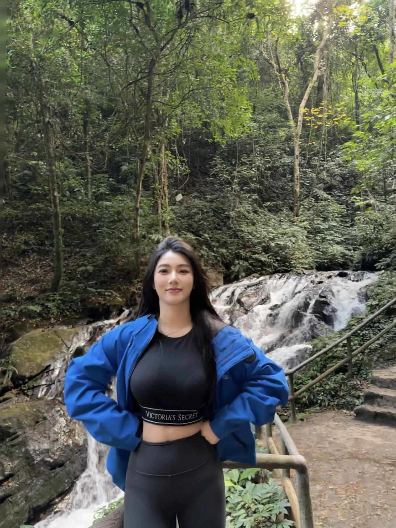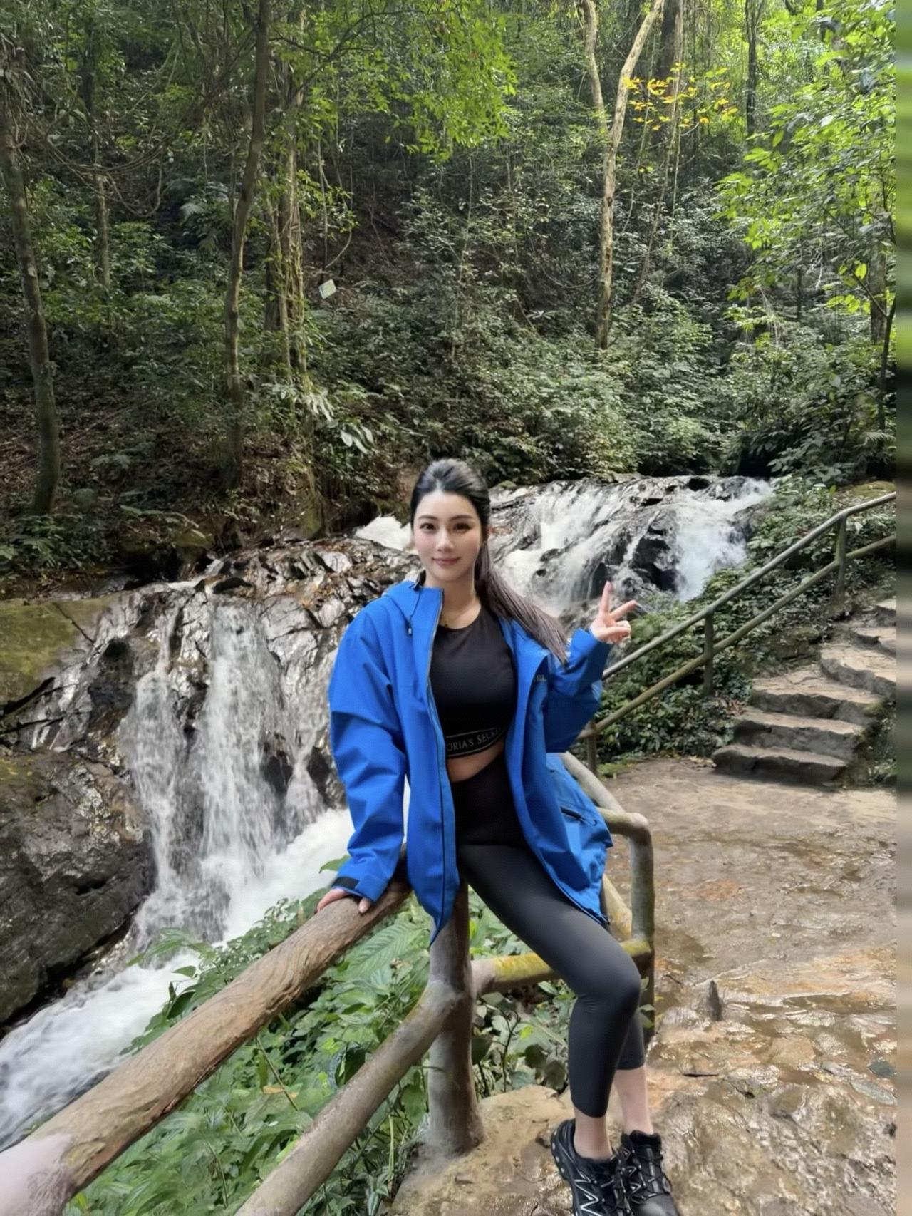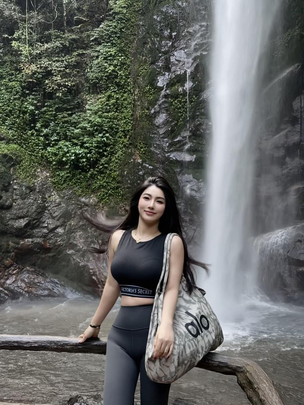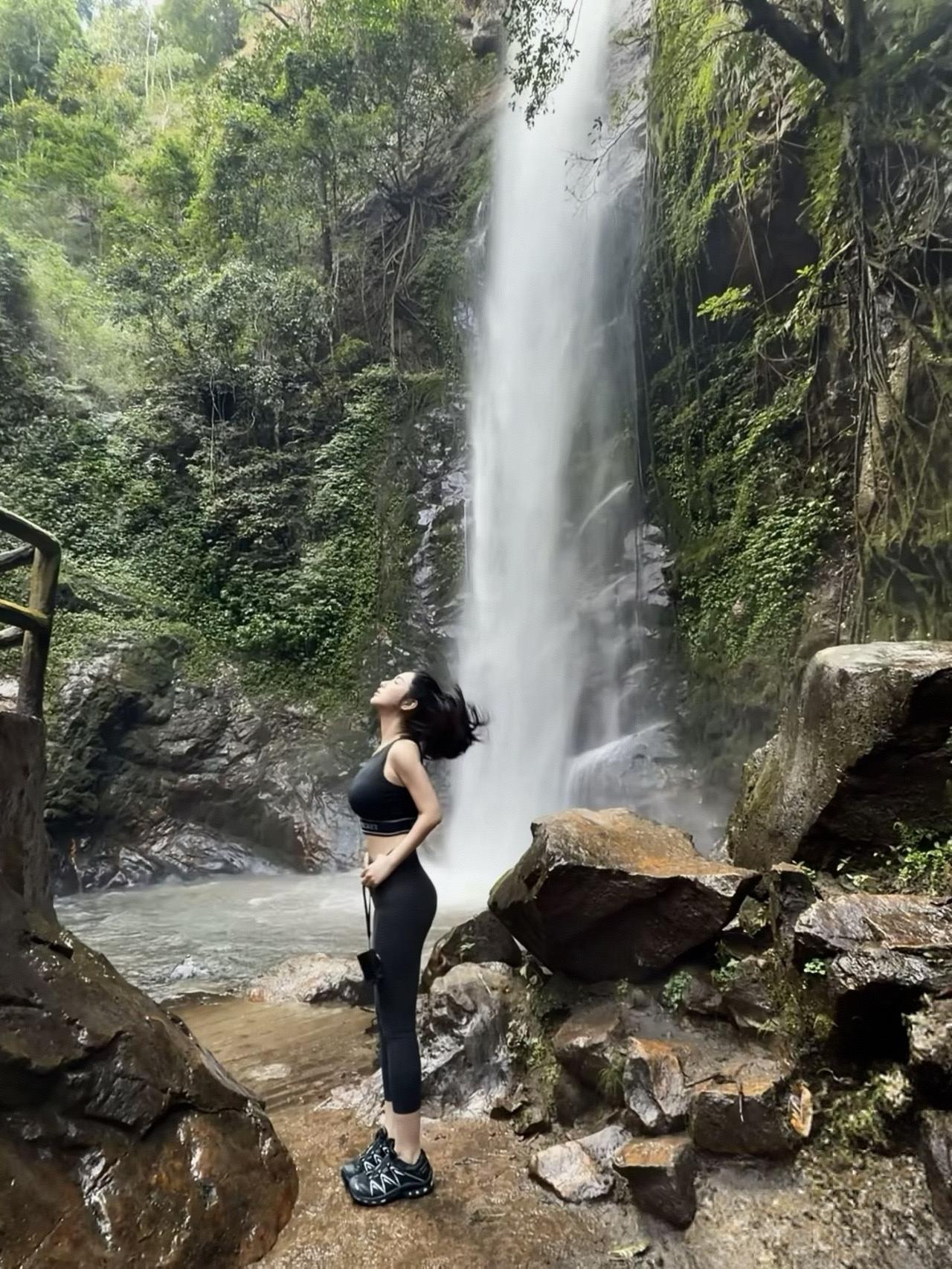 瀑布飞流直下,佳人轻舞飞扬