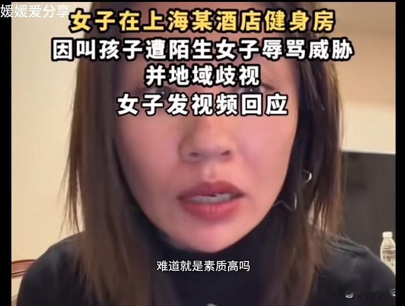 “我跟你讲,我是上海人!“上海,一女子在上海某酒店健身房呼喊女儿时,被隔壁一大姐跑过来关掉跑步机并辱骂威胁,全程无礼貌沟通,还指责称:外地人不准在这里叫,我是老上海人!
