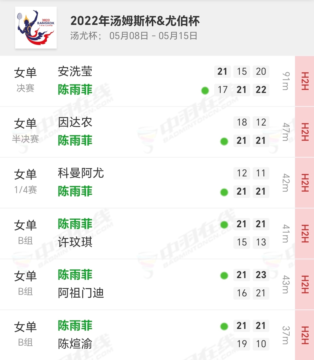 陈雨菲尤伯杯的铁血一单之路,一姐之所以叫一姐,青年赛一毕业就扛起女单往前跑,把“菲帝”这个黑称变成夸奖,太强了。