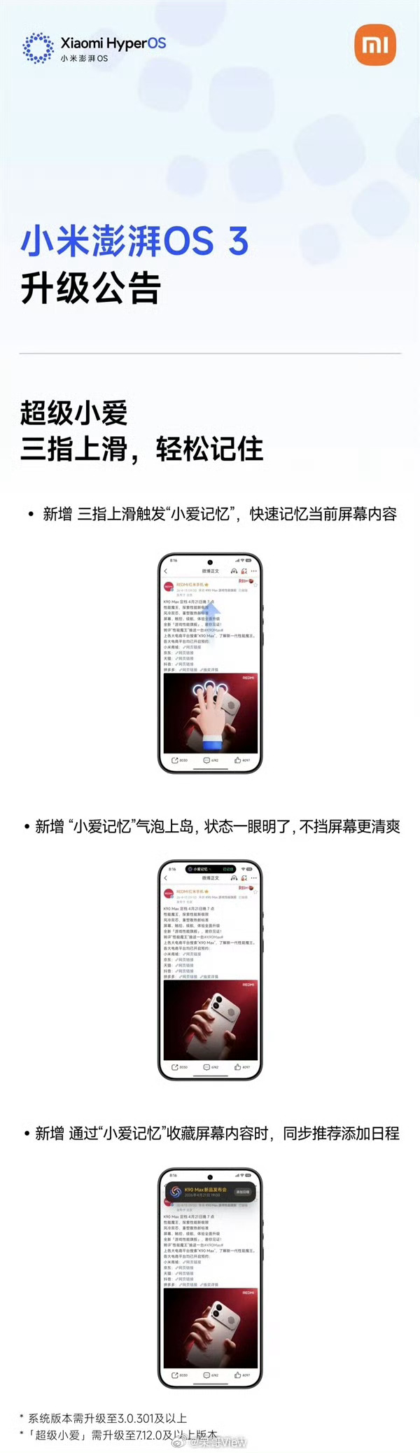 超级小爱三指上滑就能一键记住屏幕,还能自动帮你加日程,工作狂人狂喜,终于不用坚持纯手搓工作行程了。