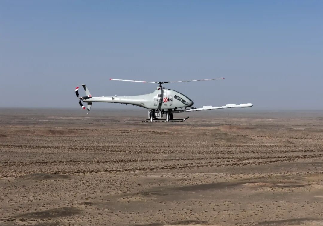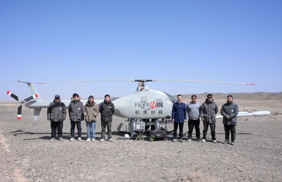 近日,甘肃某地的戈壁滩上,一架航景创新自主研发的FWH-1500无人直升机搭载着