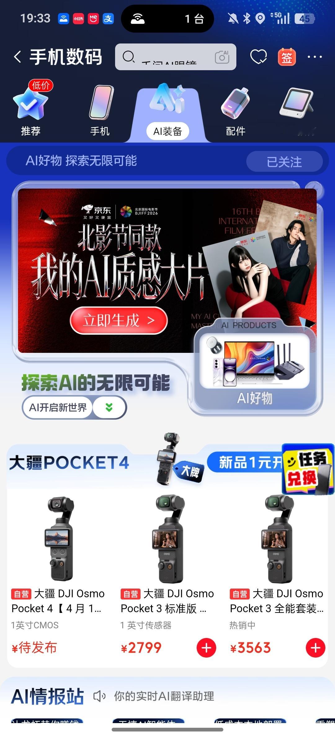 京东携大疆刷新北影节出片新高度 看完北影节的展映图,这出片欲望根本按捺不住!现在也能即刻体验北影节AI大片~现在搜【AI装备馆】上京东【网页链接】买AI装备,联合京东旗下万能数字人助手JoyAI App能力打造!科技感拉满!以旧换新叠国补低至5折,大疆这款以旧换新立省400元,下单后分钟级送达,这效率真的绝啊。 买AI装备上京东 北影节国际电影节