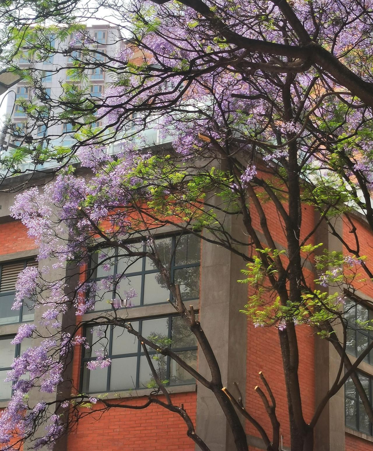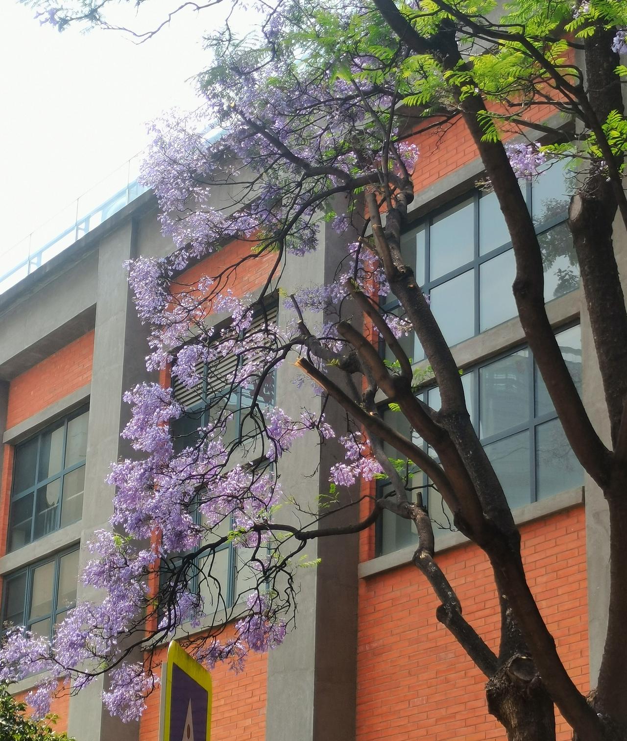 而铁皮巷主打的景致却是那街两旁高耸参天的巨大蓝花楹,这里的蓝花楹虽没名气很大的教场路的那般连绵密集,但胜在幽静高大。