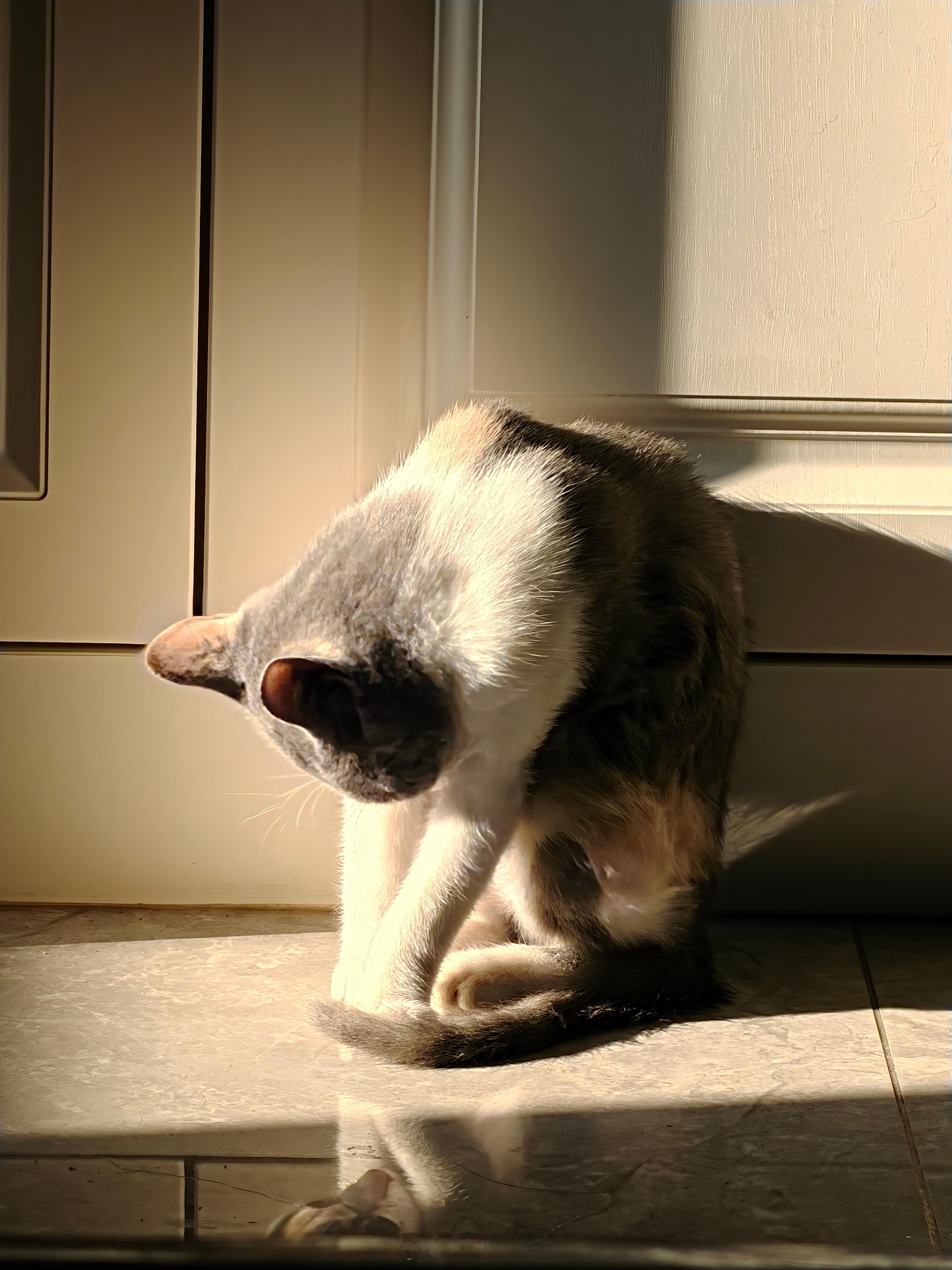在小区闲逛时,无意间撞见两只小猫蜷缩在佛像怀里,瞬间心都化了。凑近仔细一看,
