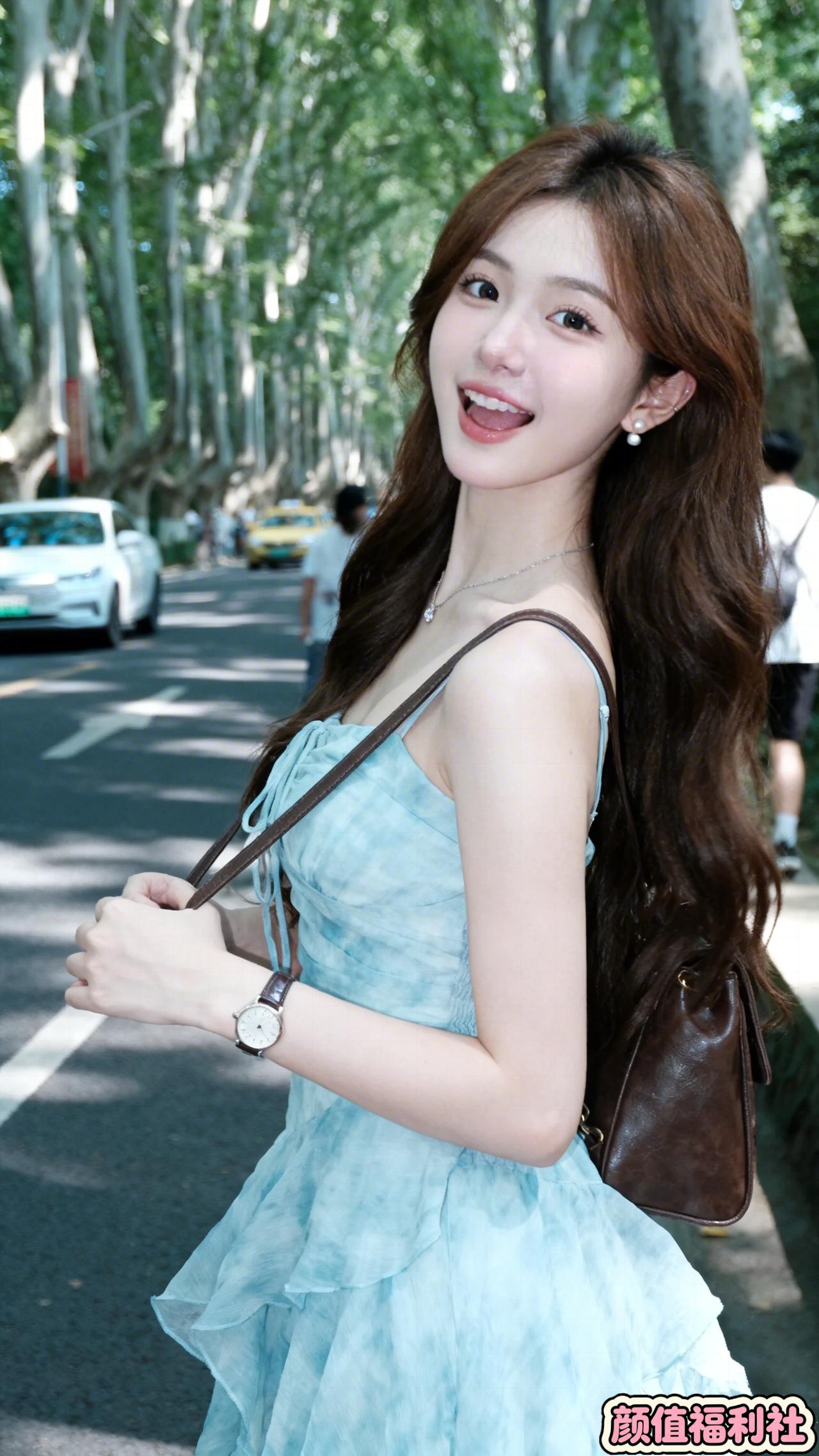 浅蓝色的吊带裙,像夏天里的天空,又像海边的浪花。