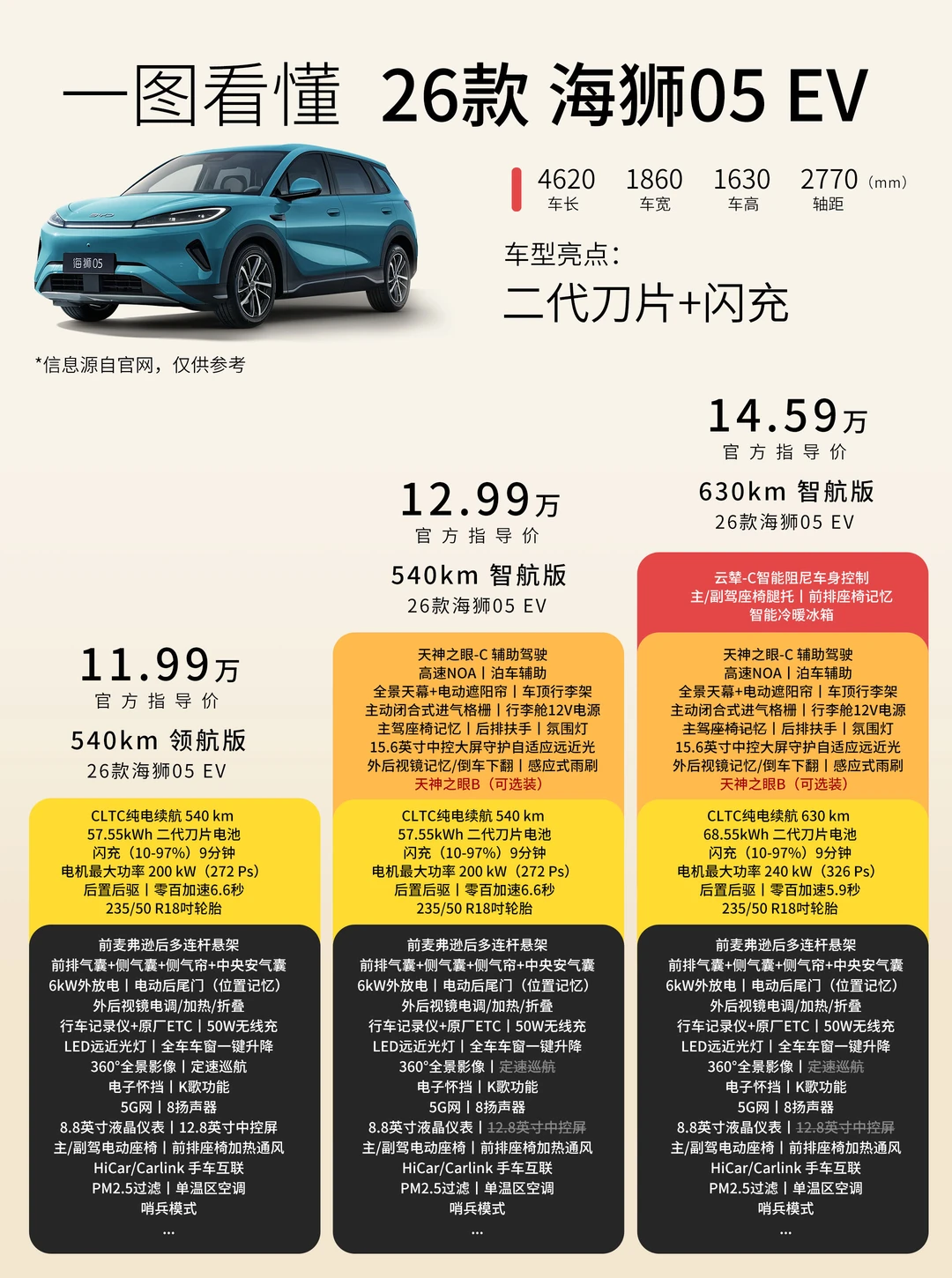 [向右R]再看EV版:用上了二代刀片电池和闪充技术,续航540公里或630公里,充电快得离谱,用官方说法就是“5分钟充好、9分钟充饱”,基本不用再焦虑没地方充电。