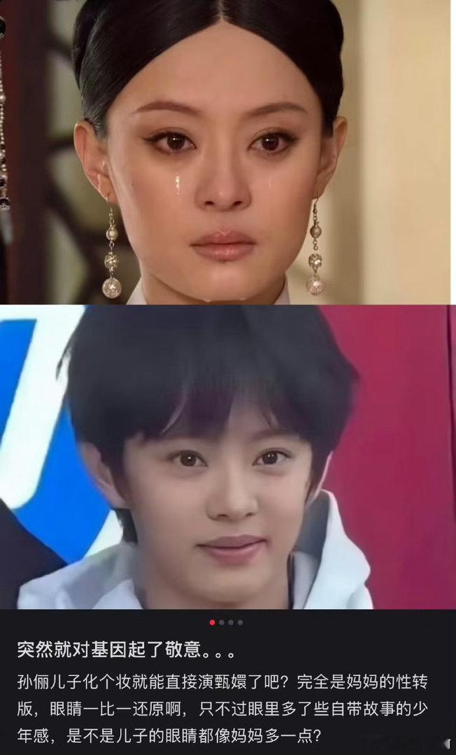 孙俪儿子画个妆直接能演甄嬛了孙俪儿子等等长大了!网友说:“画个妆直接能演甄嬛。”点开照片一看——这不就是孙俪的性转版吗???五官完全复刻妈妈,尤其是那双眼睛。难怪有故人之姿,原来是故人之子。这基因,强到可怕👑孙俪孙俪