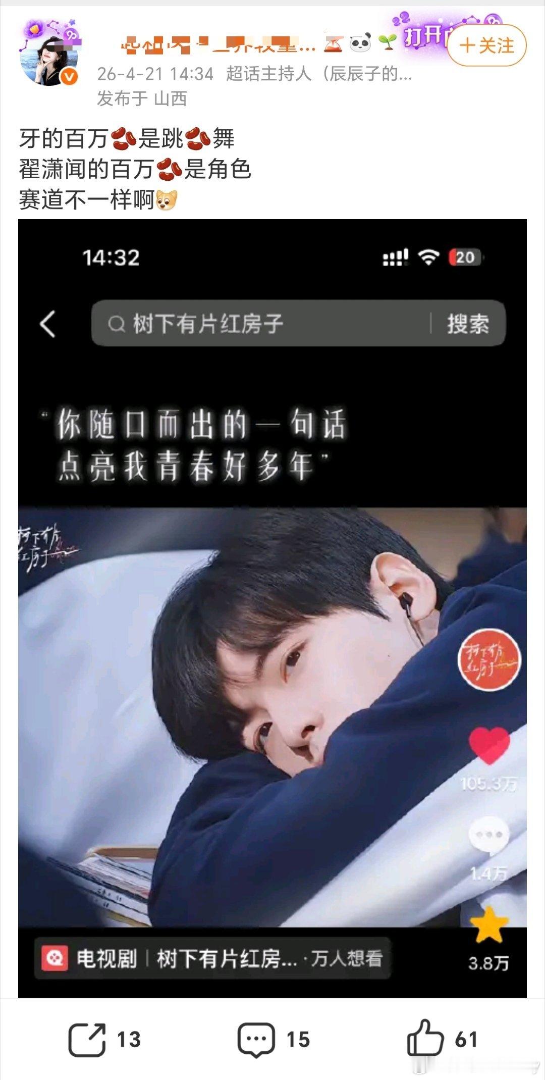 t,翟潇闻翟潇闻 粉丝突然上吴宣仪吴宣仪 gc明涵起来,说翟潇闻百万🫘是角色,