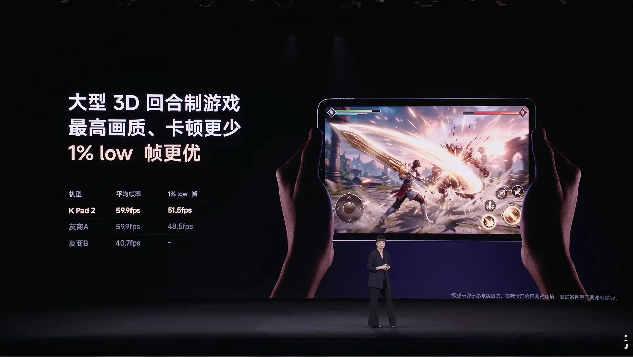 Redmi K Pad2起步价3299元!8.8英寸的尺寸拿捏得刚刚好,小巧便携能随手装进包里,日常出门毫无负担。屏幕比手机大上不少,多指操作玩游戏视野更开阔,手感舒服很多。全金属一体机身质感在线,背部设计简约干净,侧边新增的自定义按键特别实用,一键开启狂暴模式、唤醒小爱都能自由设置,再加指纹解锁,日常使用便利性直接拉满。核心配置也完全不敷衍,天玑9500旗舰芯片加持,搭配大面积VC散热,芯片居中散热更均匀,握持区域有效降温,长时间打游戏也不会烫手。9100mAh大电池续航很顶,高强度玩六小时游戏,电量还能剩一半。双Type-C接口+直供电设计,细节满满。综合配置和性价比,同尺寸平板里基本找不到对手。红米发布会