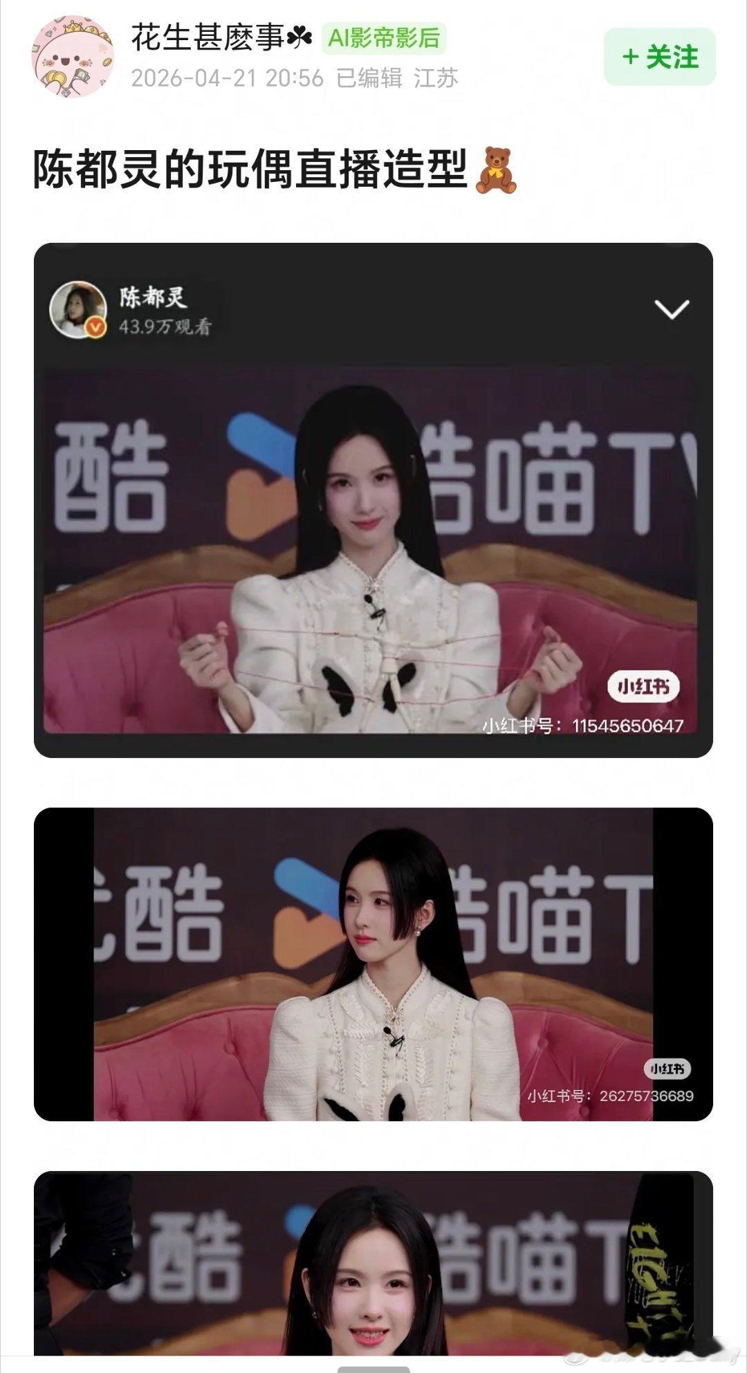 今天也没变成玩偶呢玩偶超酷会员日探班直播 陈都灵玩偶直播造型,公主切杀疯了,嘟嘟