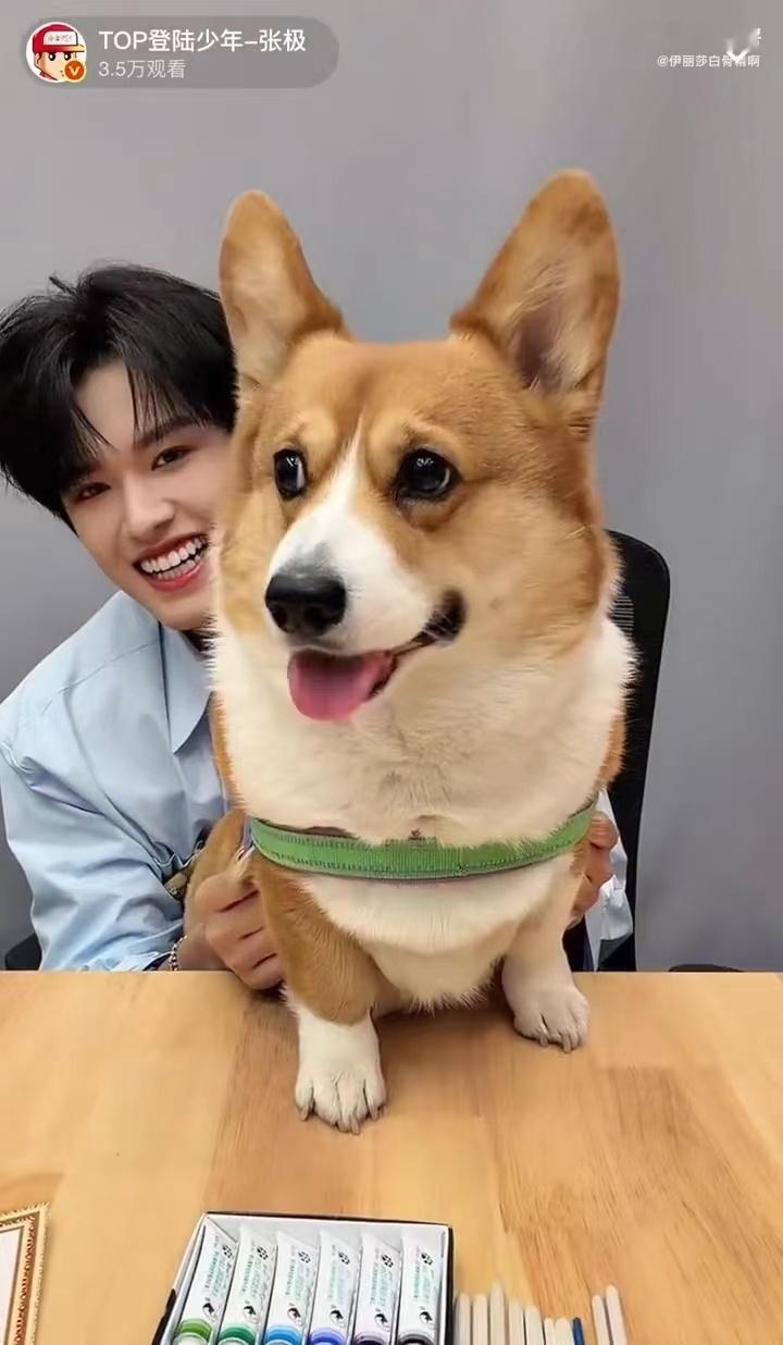 张极带狗直播张极带啵啵直播点开直播被张极和啵啵可爱晕,小狗乖巧陪伴,温柔互动甜度
