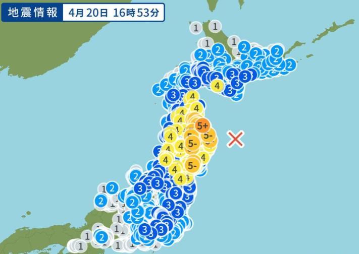 结果你猜怎么着?才过了三天,4月20日下午,一场7.5级(有消息修正为7.7级)的强震就狠狠砸在日本东北部三陆近海!