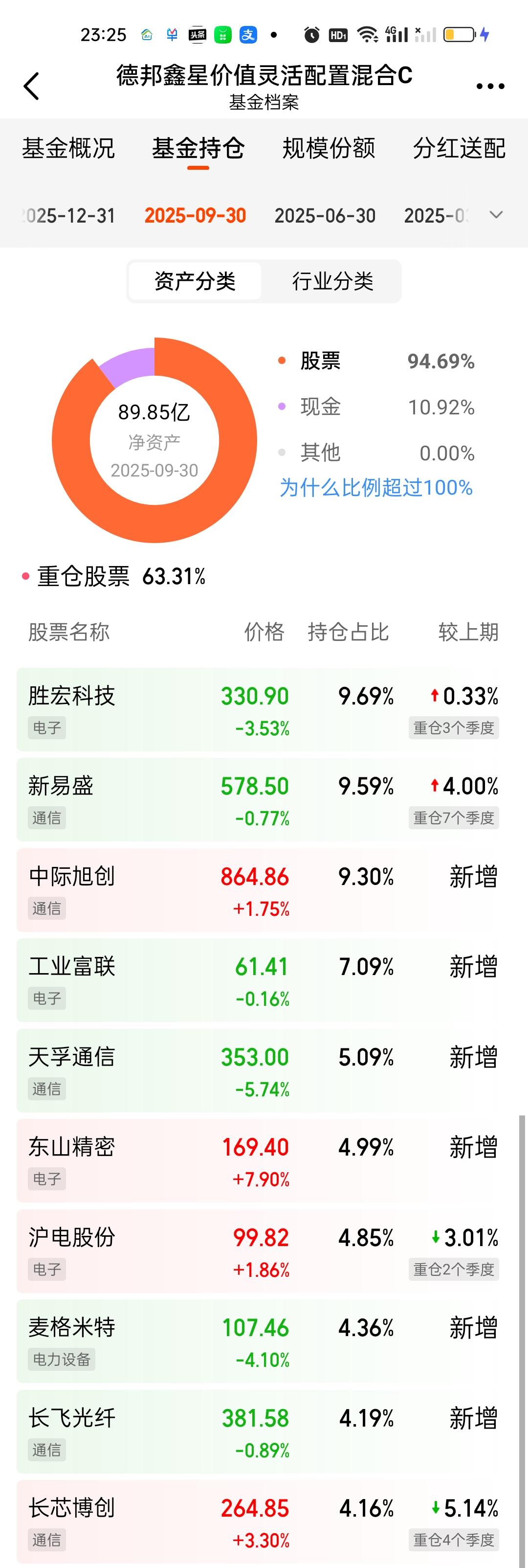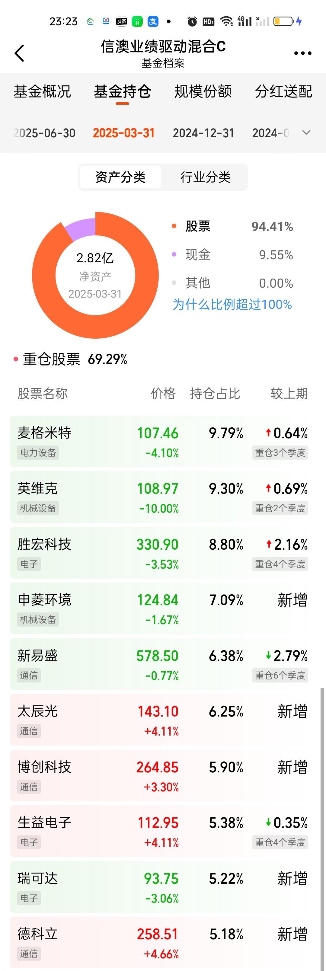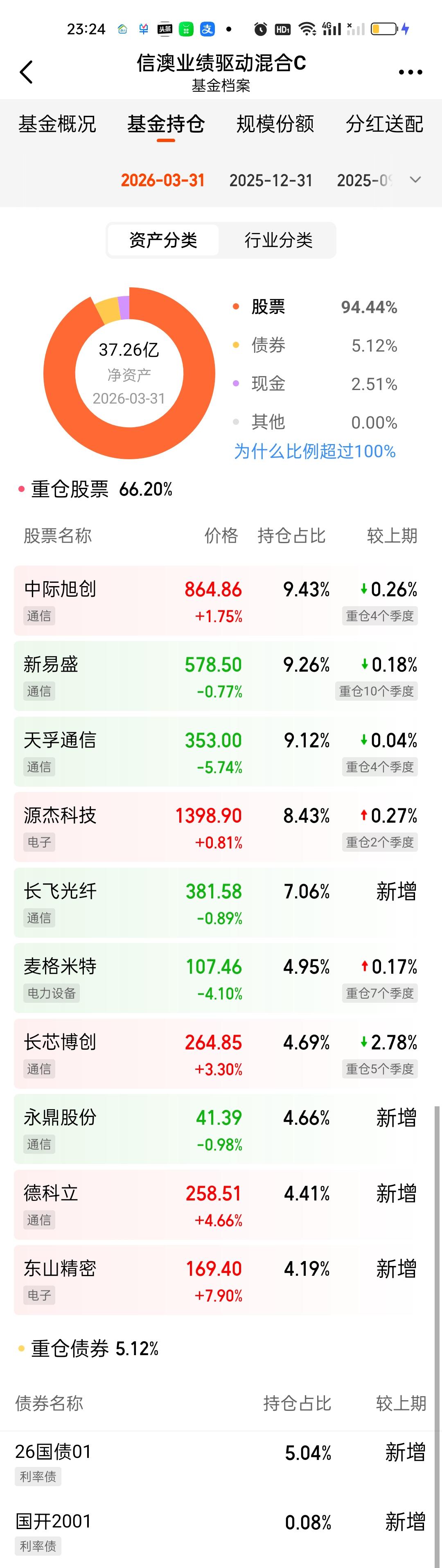 这次调仓换股新增了长飞光纤,永鼎股份,德科立和东山精密。舍弃了沪电股份,胜宏科技,剑桥科技,景旺电子,这是舍弃了PCB新增了光纤。收益也是大幅增加。但信澳业绩的规模降低了,持仓集中度也下降了,明显防御的味道更明显了。