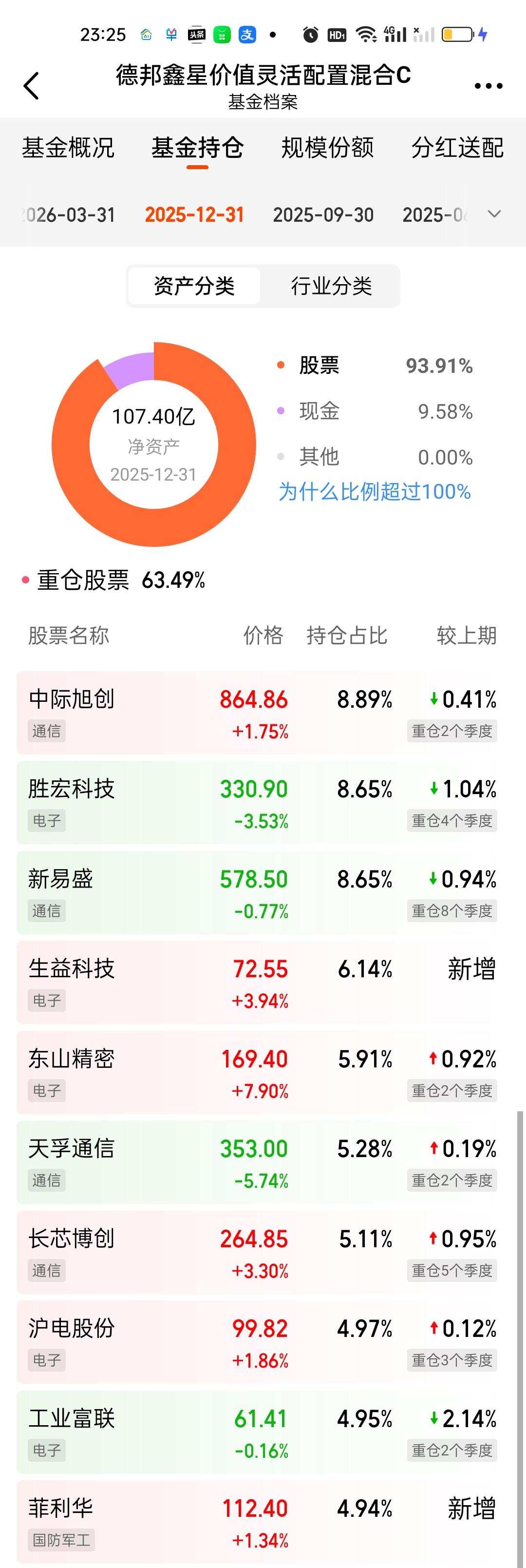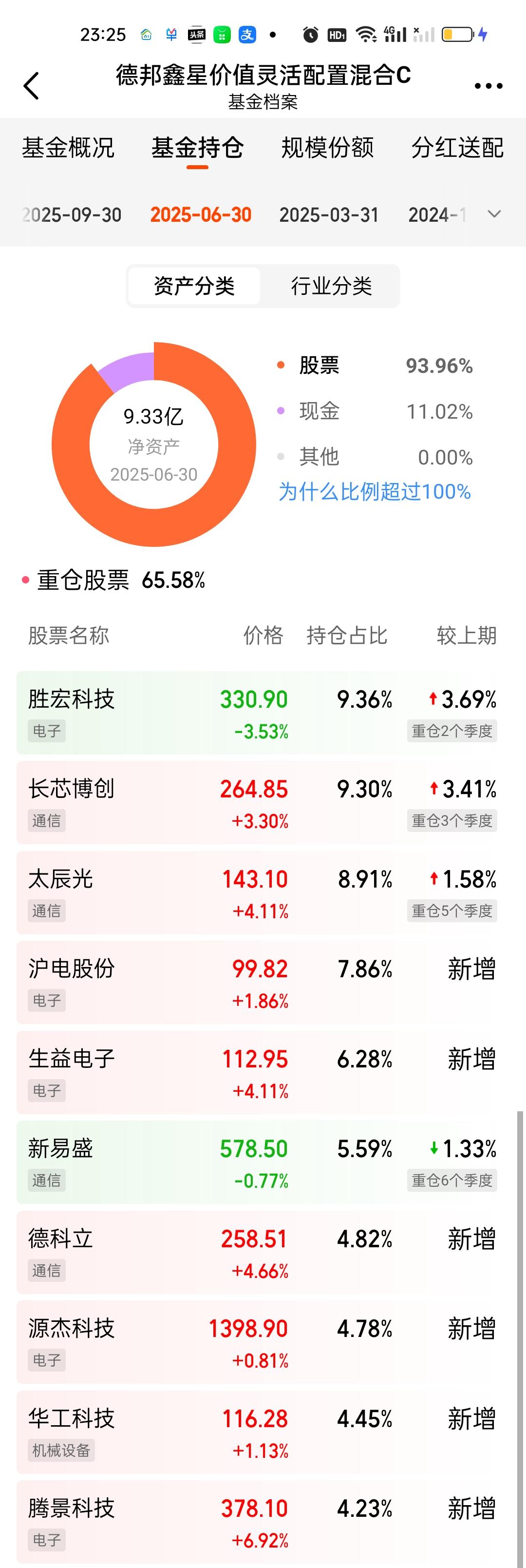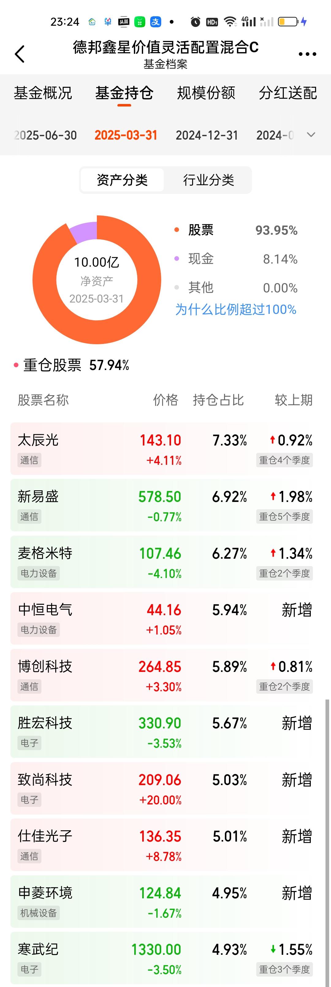 德邦鑫星前十大重仓股占比一直在65%上下。这次降到了61.62%。算是风格不那么激进的那类。这次调仓换股新增了4只个股,炬光科技,麦格米特,环旭电子,罗博特科。舍弃了生益科技,沪电股份,工业富联,菲利华。基金规模也从107.40亿下降到了87.14亿。