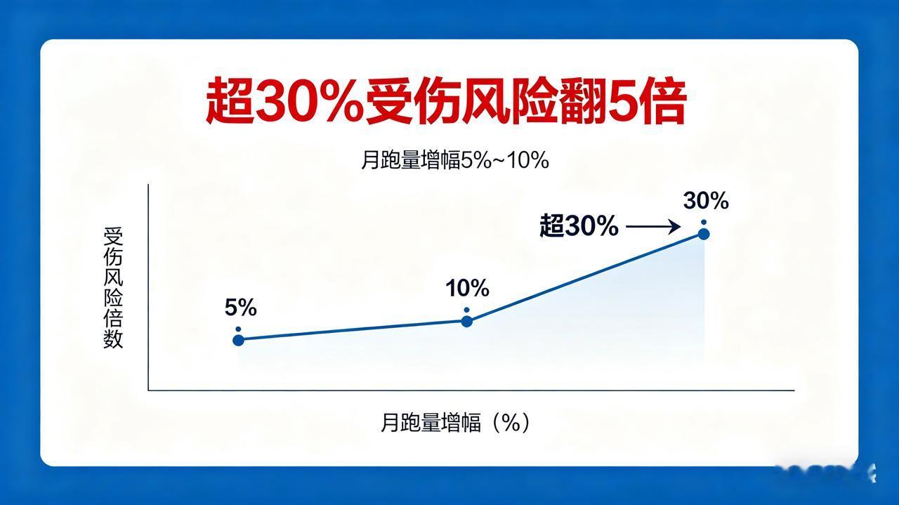 1. 月跑量增量严控5%-10%,超30%受伤风险翻5倍