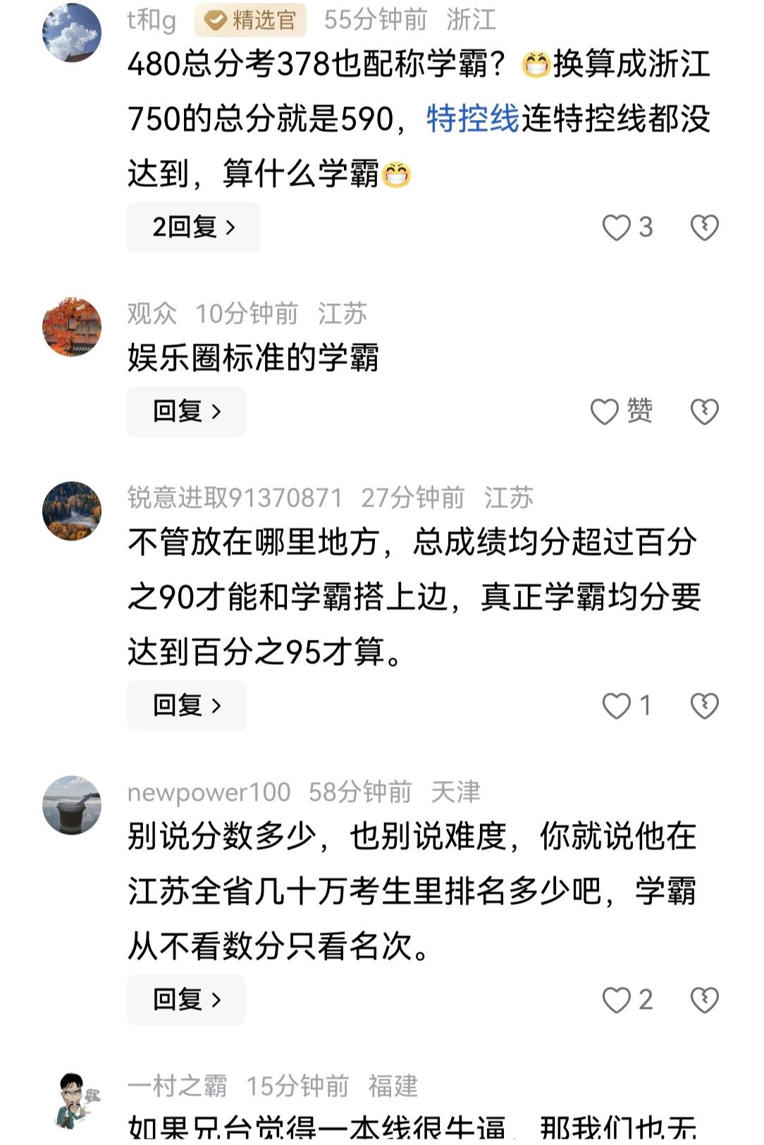 张凌赫当年算不算学霸?他的高考成绩378,据说乍一听笑坏了不少人,直到告诉他总分只有480;即便如此,还有浙江网友嘲笑: 换算成浙江750总分也才590,连特控线都没达到,算个P的学霸;居然还有江苏本省考生也跟着瞎起哄 : 超过90%才够得到边,超过95%才算真学霸。