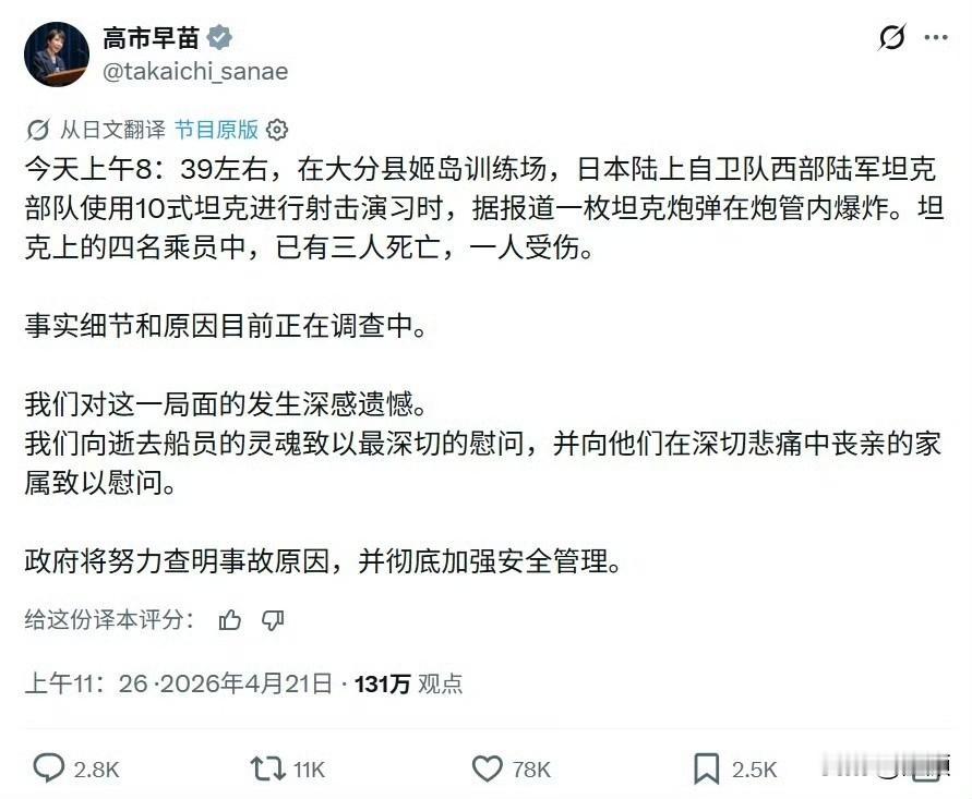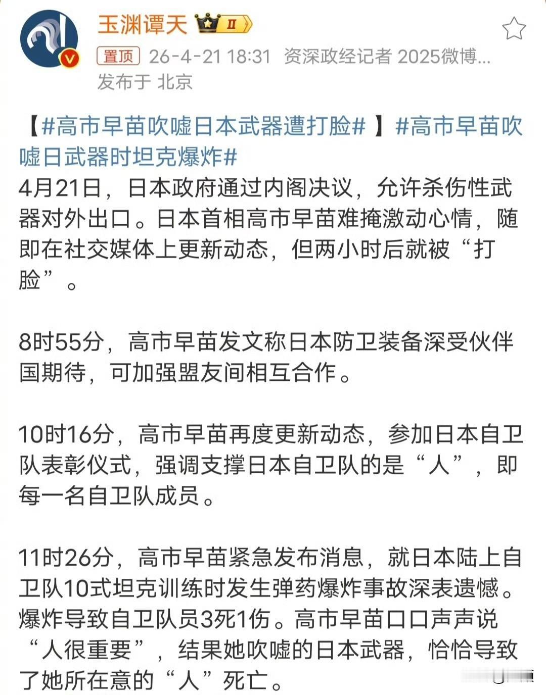 高市早苗:看,3死1重伤,日本杀伤性武器狠起来连自己都杀,你值得拥有…炮弹一下子