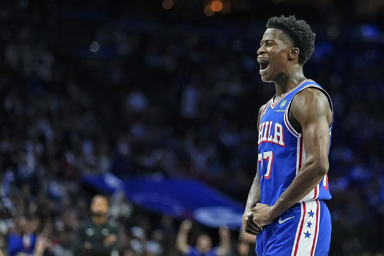 76人探花秀埃奇库姆真的打出了身价!在今天76人半场以62-54领先凯尔特人的比