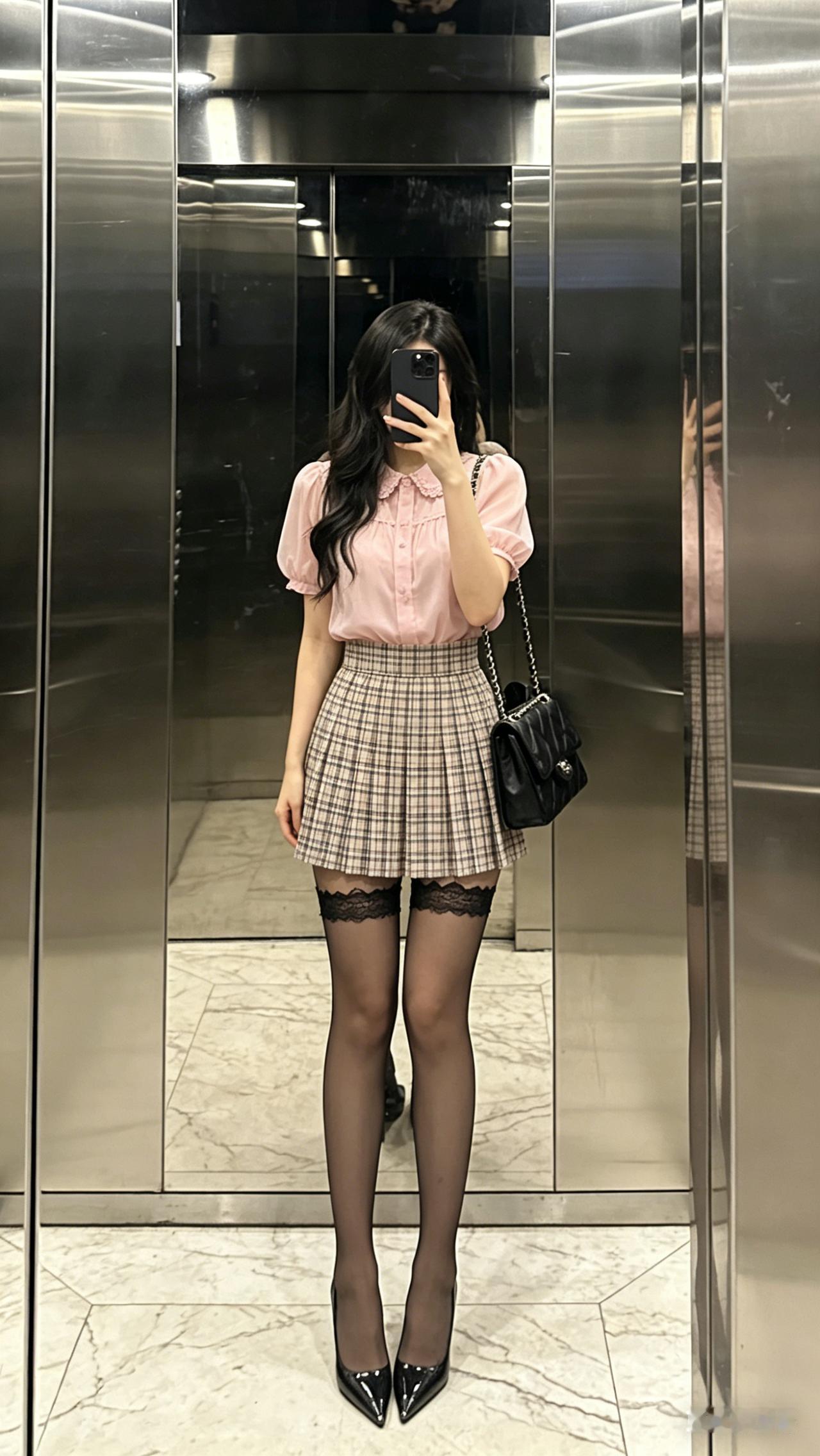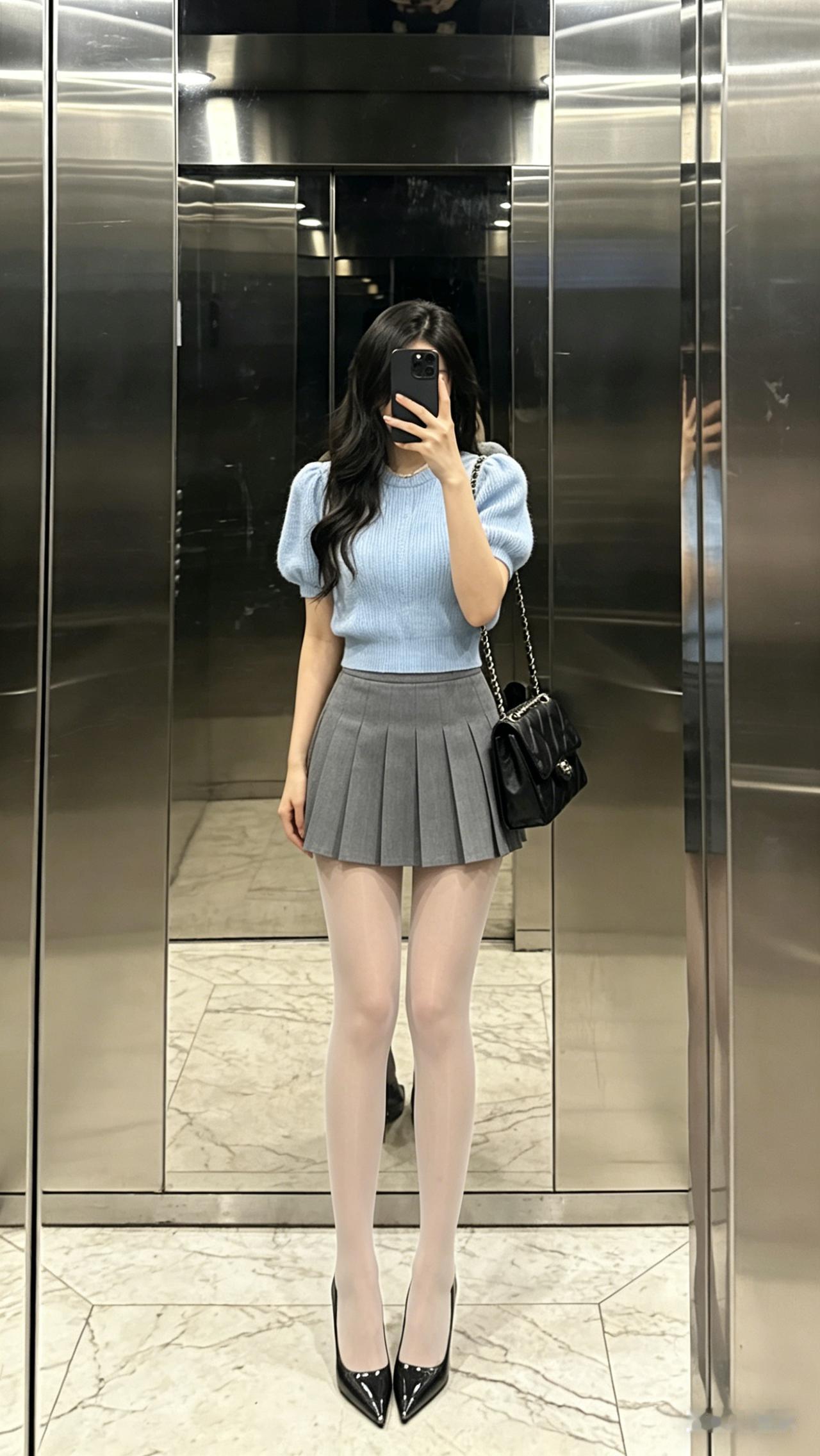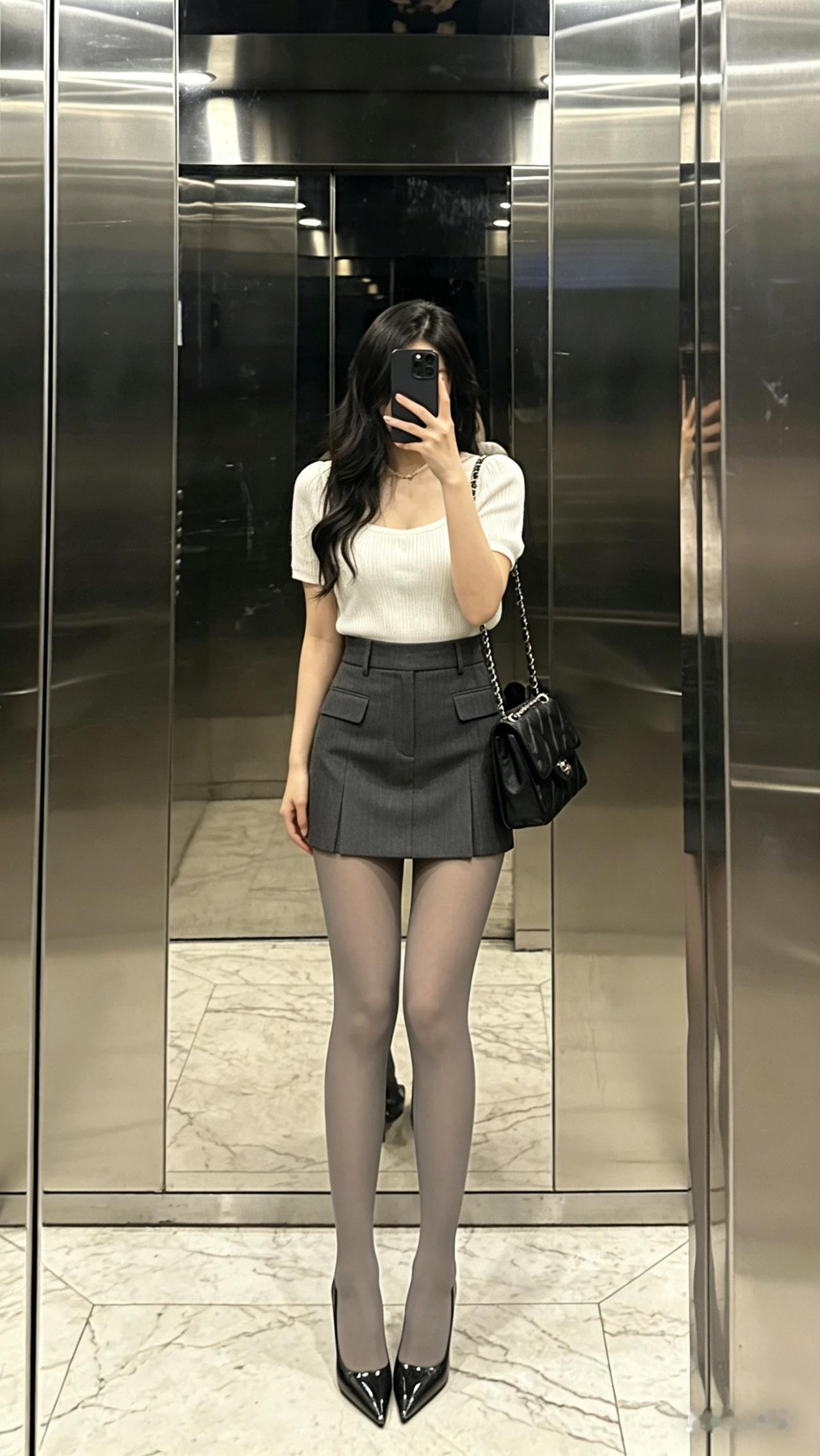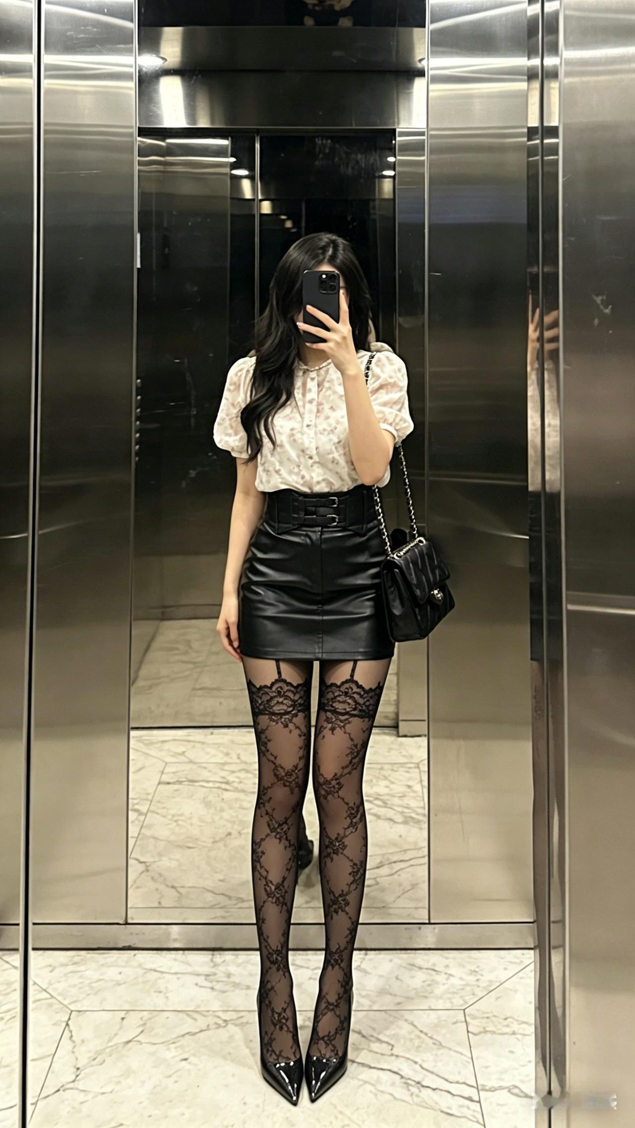 搭配上菱格纹黑丝,搭配漆皮尖头高跟鞋,又酷又御,性感又不低俗,走在路上回头率直接拉满,不管是和闺蜜炸街、去 livehouse,还是短途出游穿,都能成为人群中的焦点!