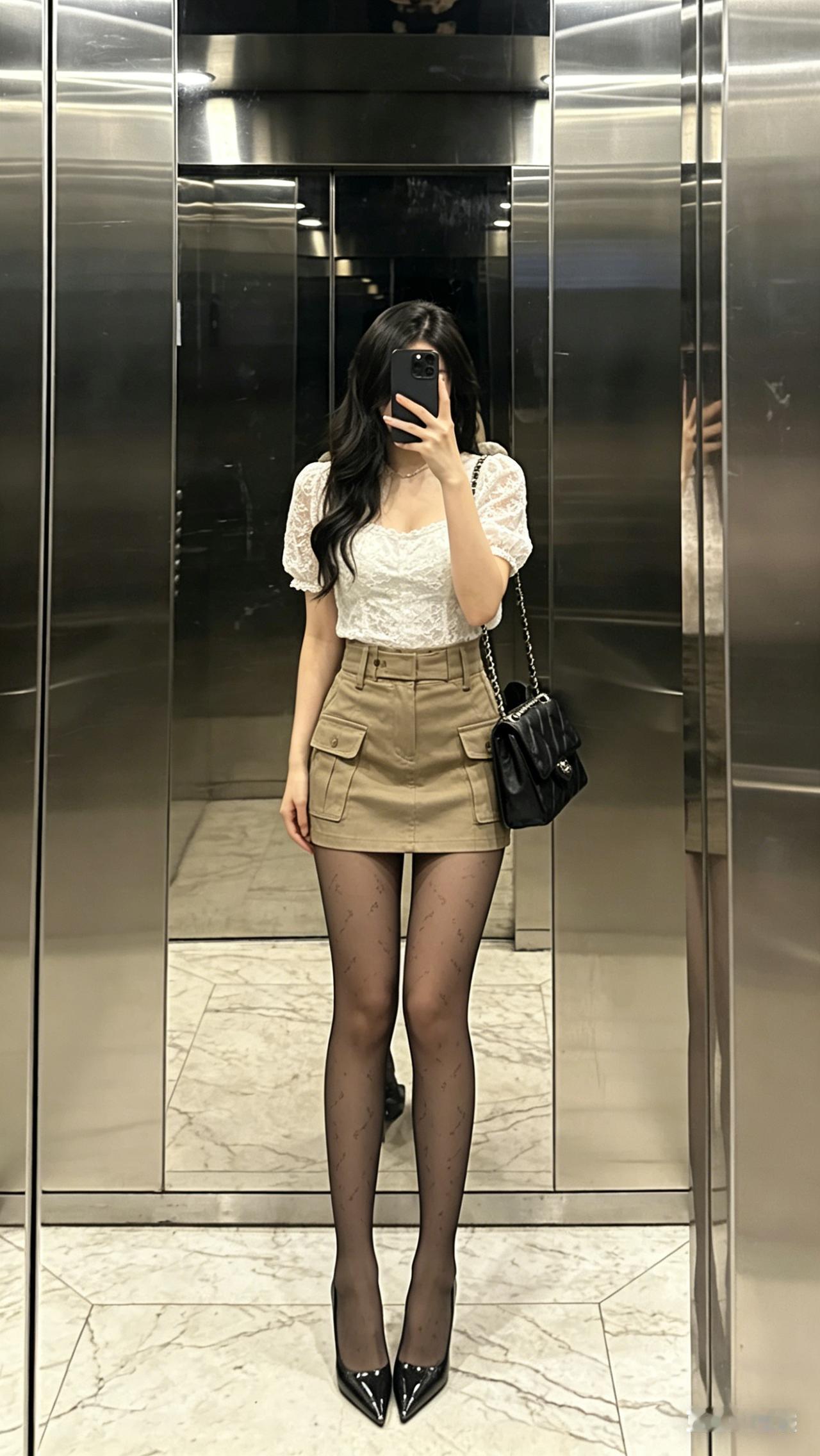 搭配高腰工装风包臀短裙,多扣束腰设计直接把腰线锁死,巨显腰细腿长,工装风的金属扣细节中和了包臀裙的性感,多了几分酷飒感,裙长设计恰到好处,不会走光又能秀出大长腿,胯宽腿粗都能稳稳藏住。