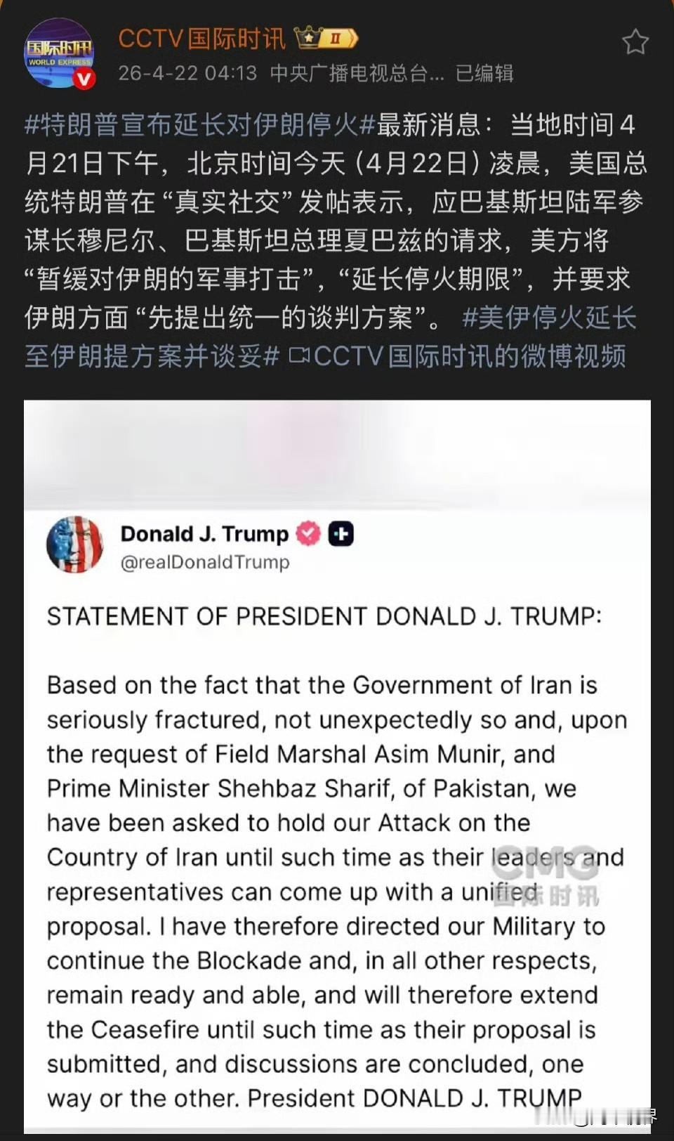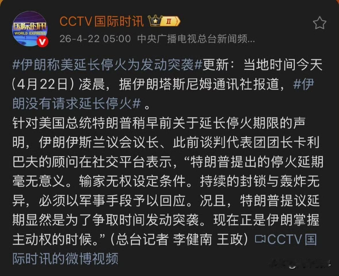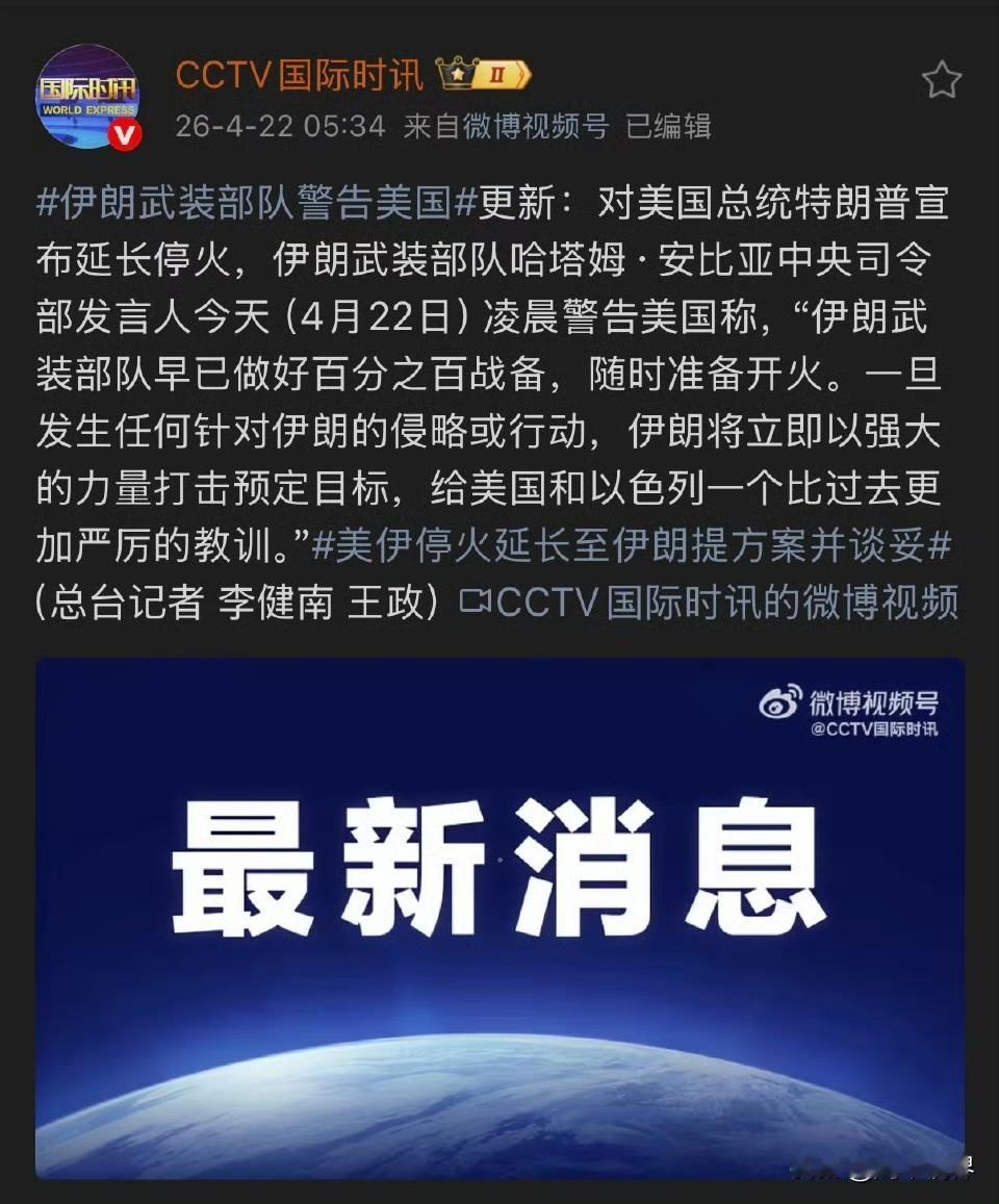 八小时前的特朗普:我不想延长停火。八小时后的特朗普:我宣布延长停火。伊朗议会议长顾问:特朗普的停火延长毫无意义,特朗普延长停火无疑是为了争取时间进行突袭。伊朗武装部队哈塔姆·安比亚中央司令部发言人今天(4月22日)凌晨警告美国称,“伊朗武装部队早已做好百分之百战备,随时准备开火。一旦发生任何针对伊朗的侵略或行动,伊朗将立即以强大的力量打击预定目标,给美国和以色列一个比过去更加严厉的教训。”伊朗人脑子清楚的很。但是美国金融市场未必。或者说,美国市场等的就是特朗普画k线。好好的市场,被美国玩成击鼓传花了?