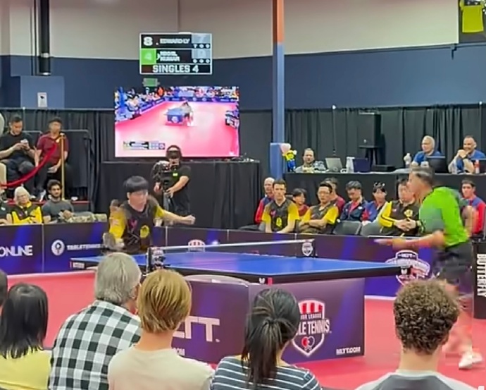 近日,樊振东参观谷歌、英伟达及youtube等大厂。4月20日,樊振东还以投资人身份现身美国职业乒乓球联赛赛场。现场字幕打出:乒乓球传奇!他还与中国驻旧金山总领事同桌观赛。