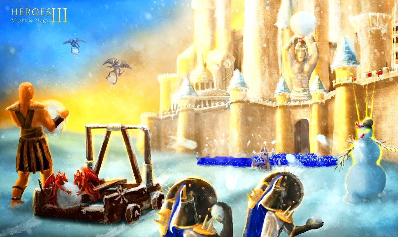 《英雄无敌3》泰坦的冬天,用匹克杰姆零压力通关! 小编好久没玩这张图了,看到吧