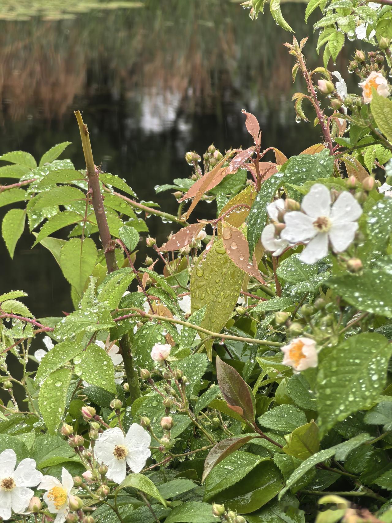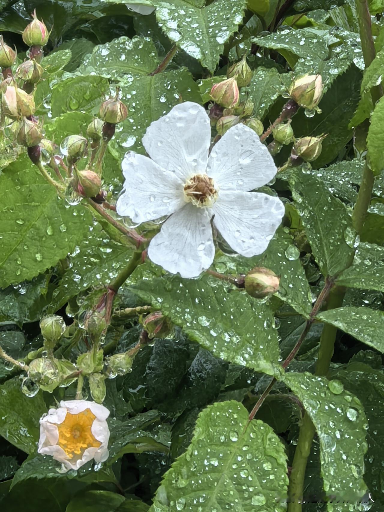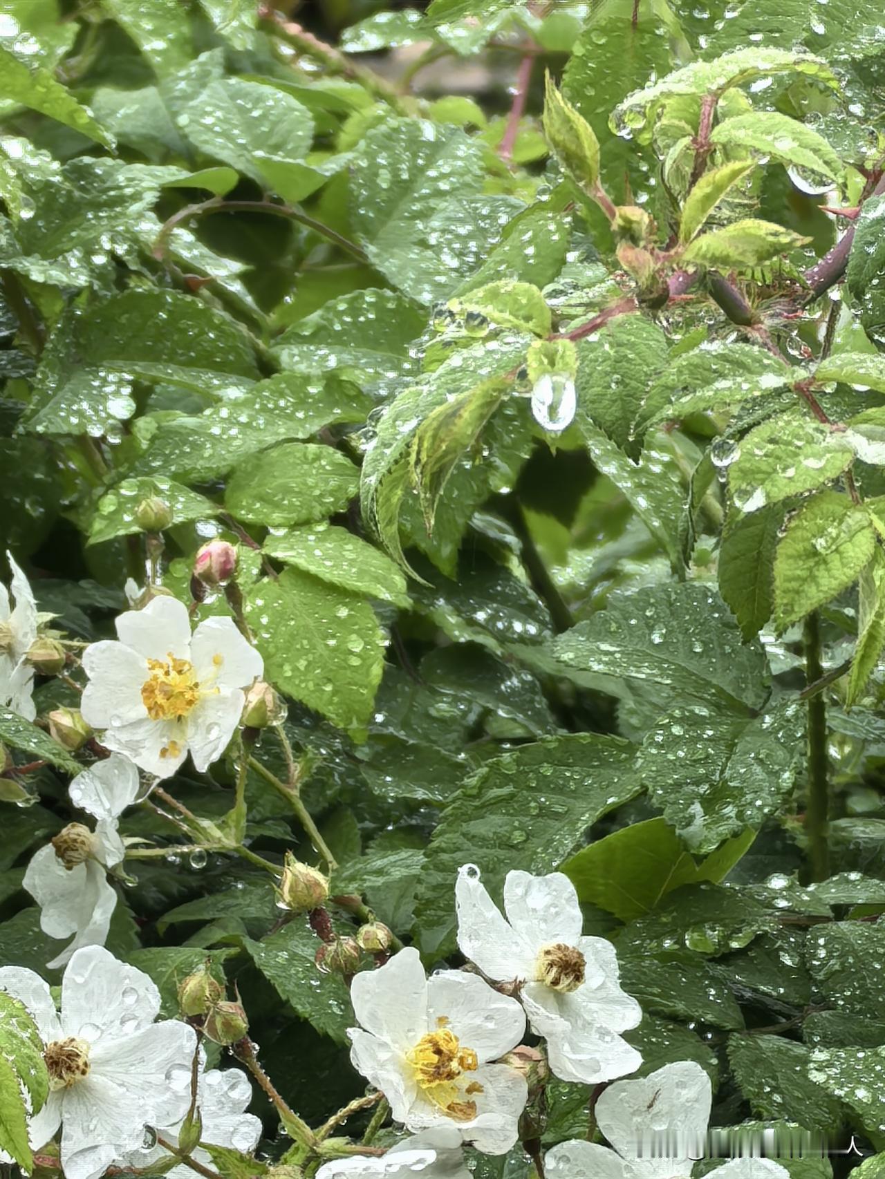 烟雨江南,雨中漫步。 蔷薇花开,清新脱俗。 一直想在绵绵春雨中,到苏州石湖的岸堤