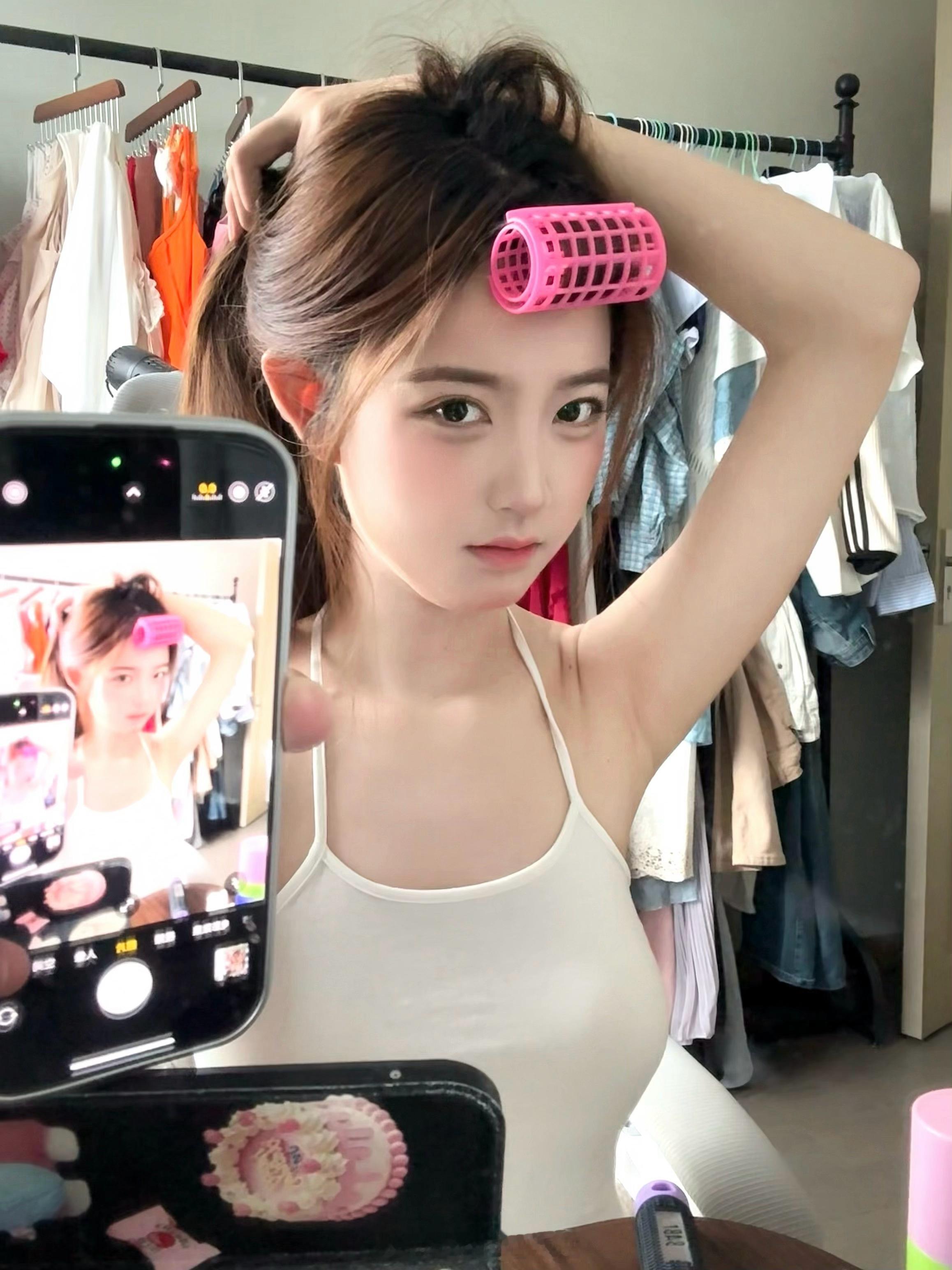 镜子里的她,把马尾梳成当年的浪漫百褶裙的褶皱里,藏着十七岁的风她转身时,挎包