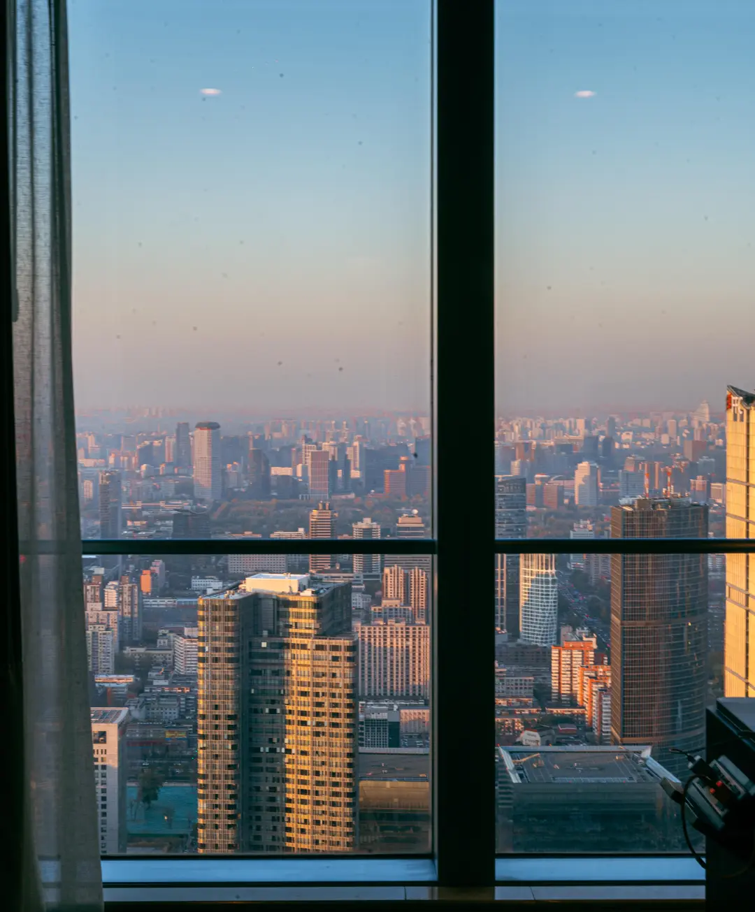50+楼层的高空视野太绝了!日落时分整个房间都被染成暖金色,随手拍都是大片!