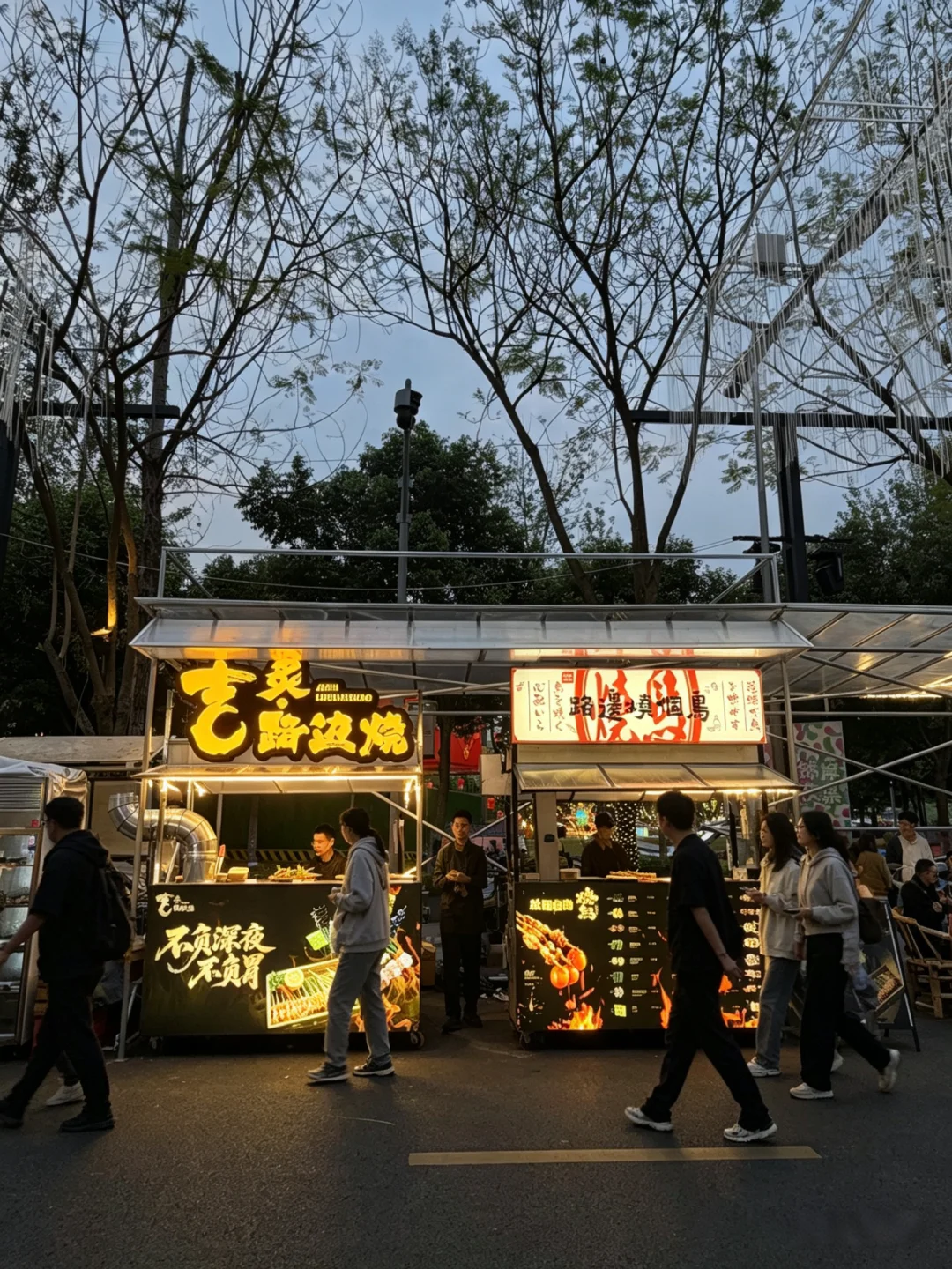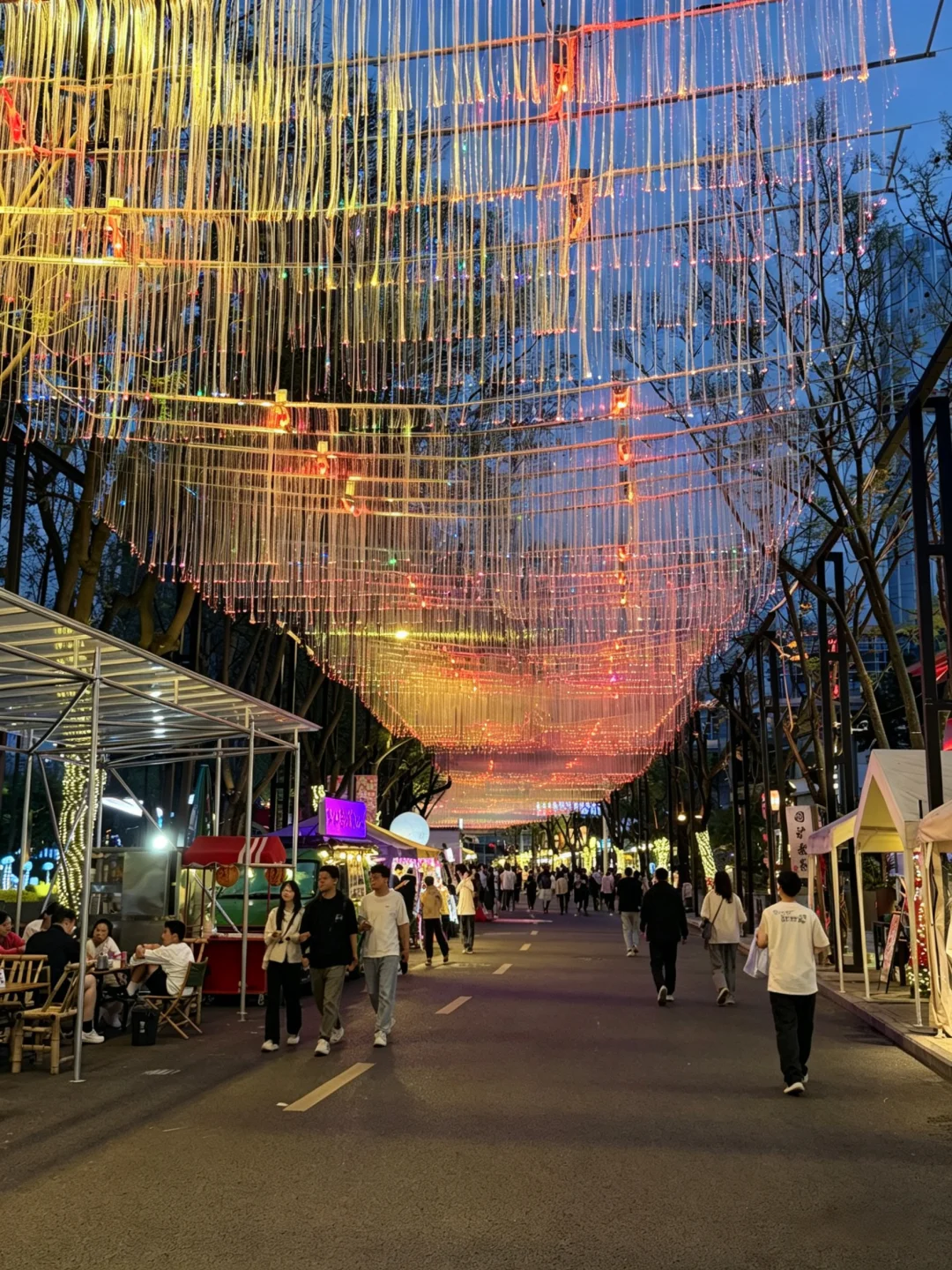 夜幕降临,一整条街的灯光一亮,氛围感直接拉满……垂落的暖黄灯,配上各种餐车和摊位,烟火气真的绝了!而且这里吃的真的超级多,随便逛逛都能让你吃撑……
