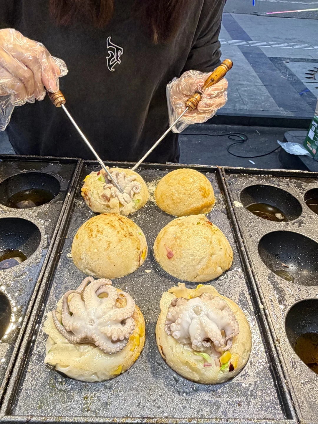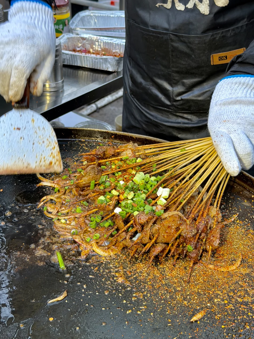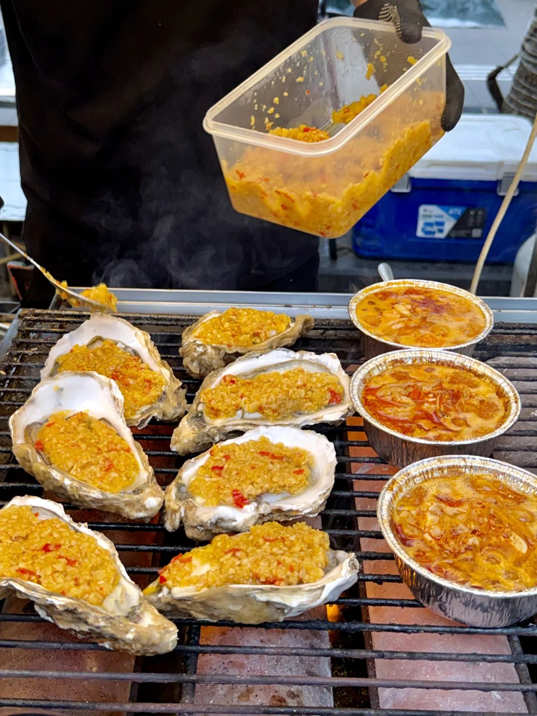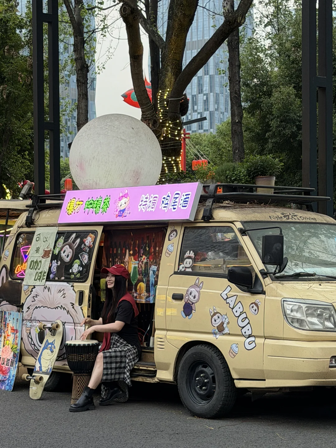 和姐妹吃了钵钵鸡、烤脑花、烤生蚝、章鱼烧和牛肉烧饭...一人拿着一杯酸奶西米露,随便走走都蛮出片!