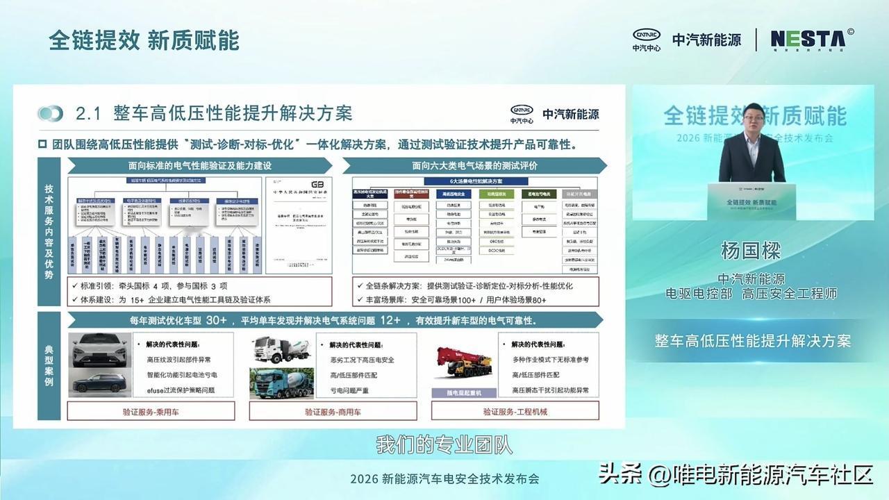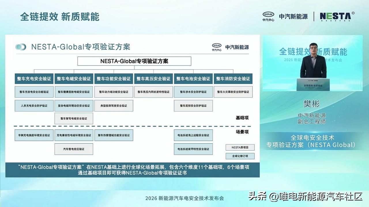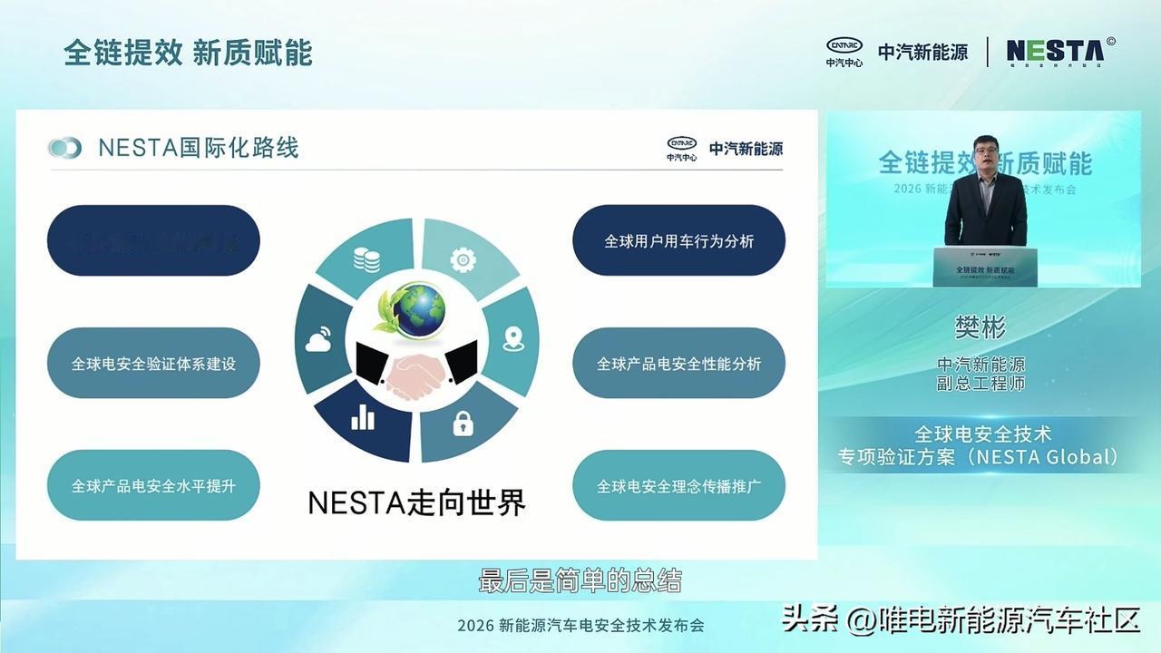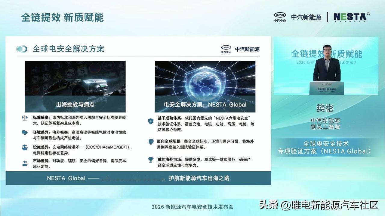 中汽研新能源在今天举行2026新能源汽车电安全技术发布会[思考]主要是为中国车企出海提供全链条技术赋能与安全背书 ,来符合全球标准,满足海外市场对安全的需求[思考]