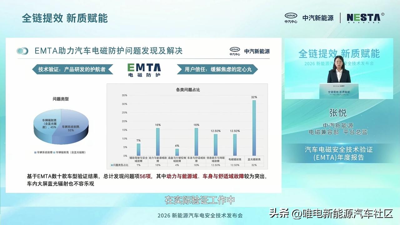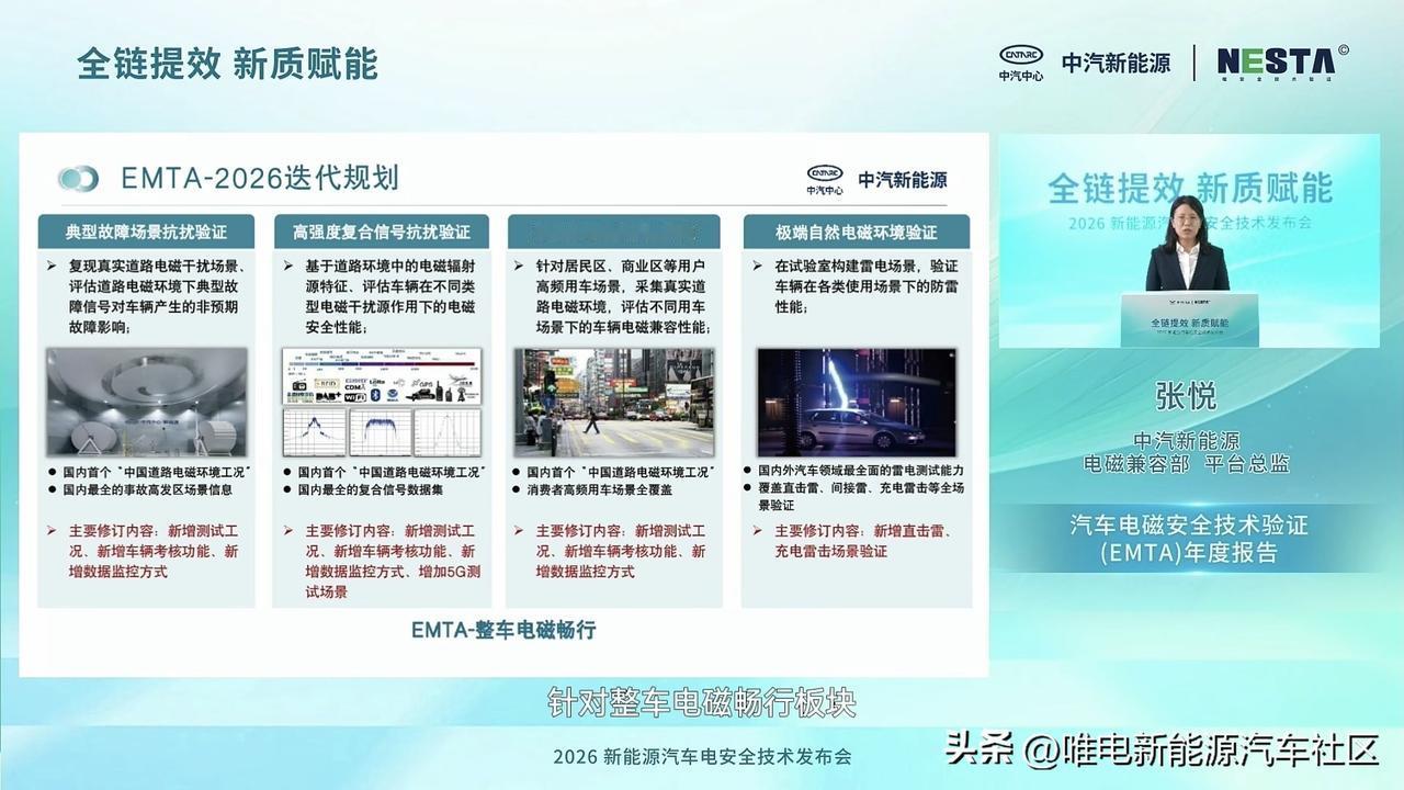 -现场发布2025年度针对电磁防护技术验证的EMTA报告,累计帮行业排查出50多项电磁安全问题[思考]2026新规划将重点针对辅助驾驶传感器误触发、指令异常等风险,以及电磁辐射健康进行技术迭代,将新能源车可能存在的隐形干扰降到最低,让智能驾驶更稳、座舱更健康;