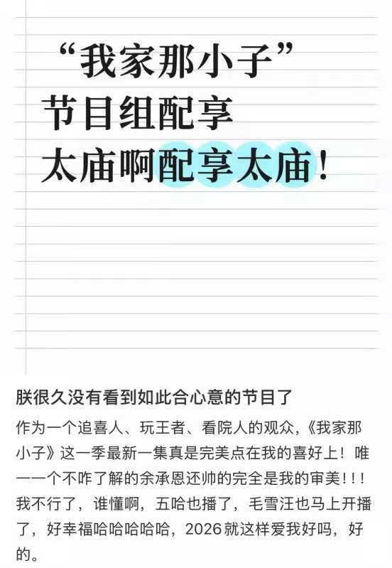我家那小子喜人院人大团建爱看群像的有福了十个勤天蒋敦豪、院人唐九洲、喜人吕严、电竞选手一诺,还有夏之光、余承恩、姚琛齐聚一堂,多厨狂喜!群像爱好者真的有福了,已经开始期待这群人凑在一起的名场面了~我家那小子
