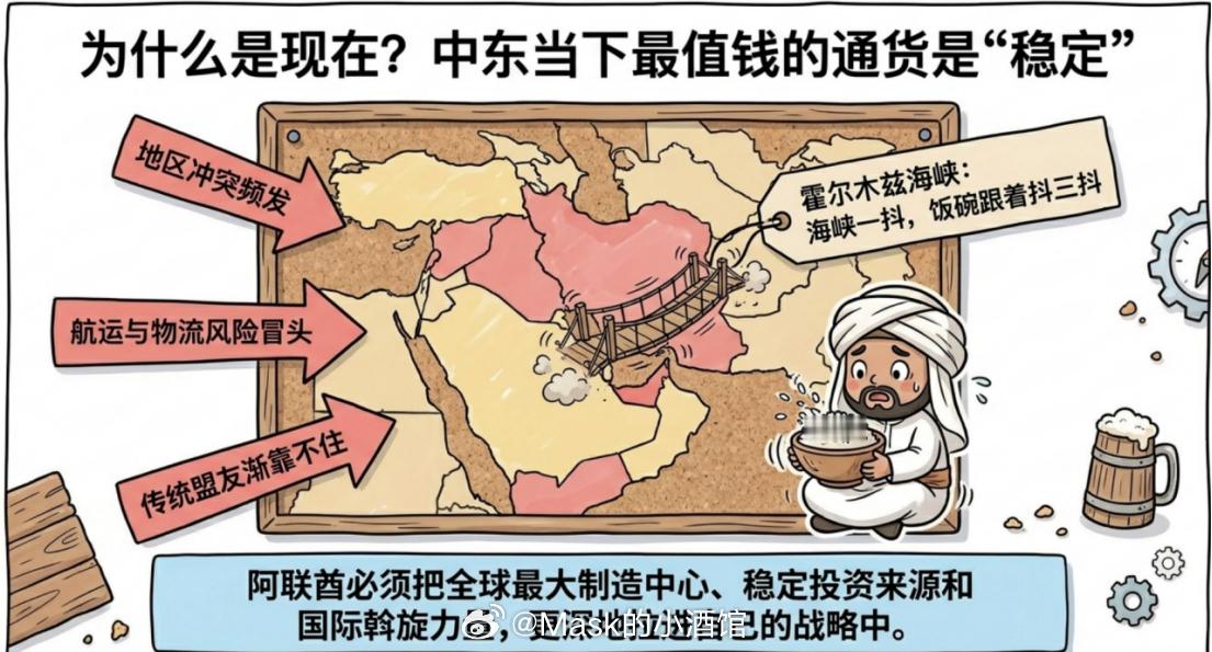 这意味着啥?意味着阿联酋和东大的关系,已经越来越不像传统的卖油和买货,而是开始进入资本、供应链、技术和市场深度咬合的新阶段。为什么偏偏是这个时间点?答案也不复杂,因为中东现在最值钱的,是稳定啊!霍尔木兹海峡动不动就被封,对阿联酋这种靠贸易、航运、金融和能源枢纽吃饭的国家来说,海峡一抖,饭碗就跟着抖三抖。