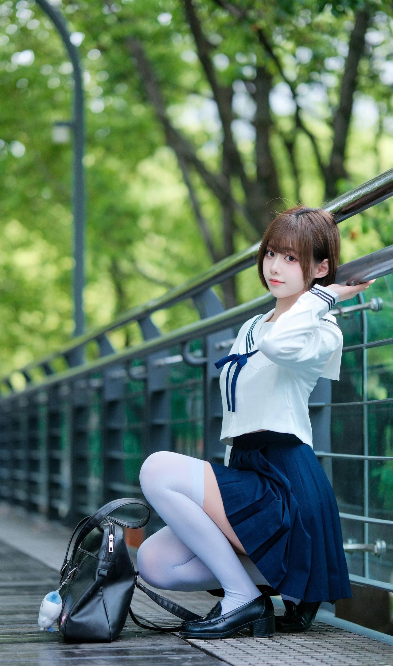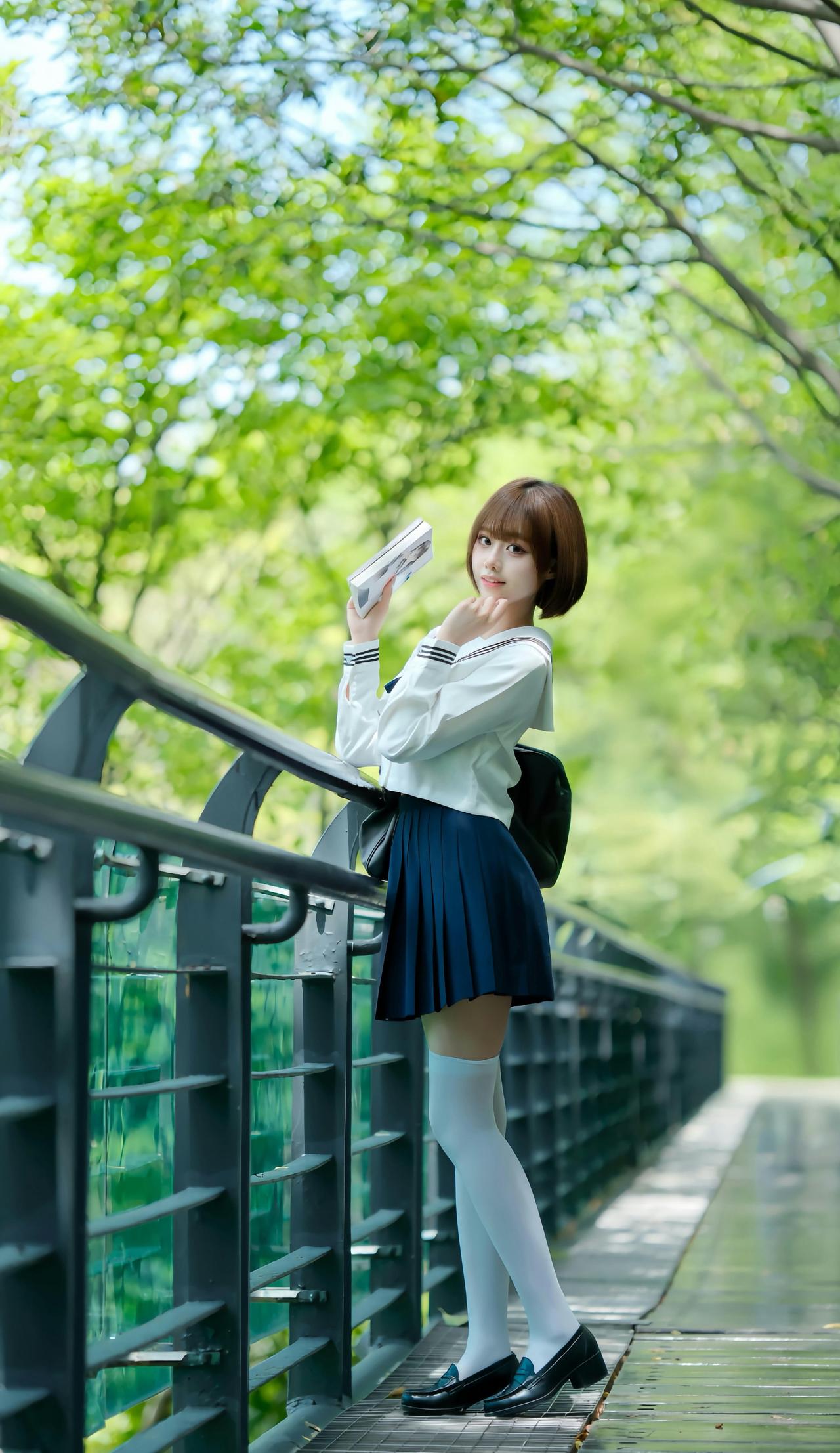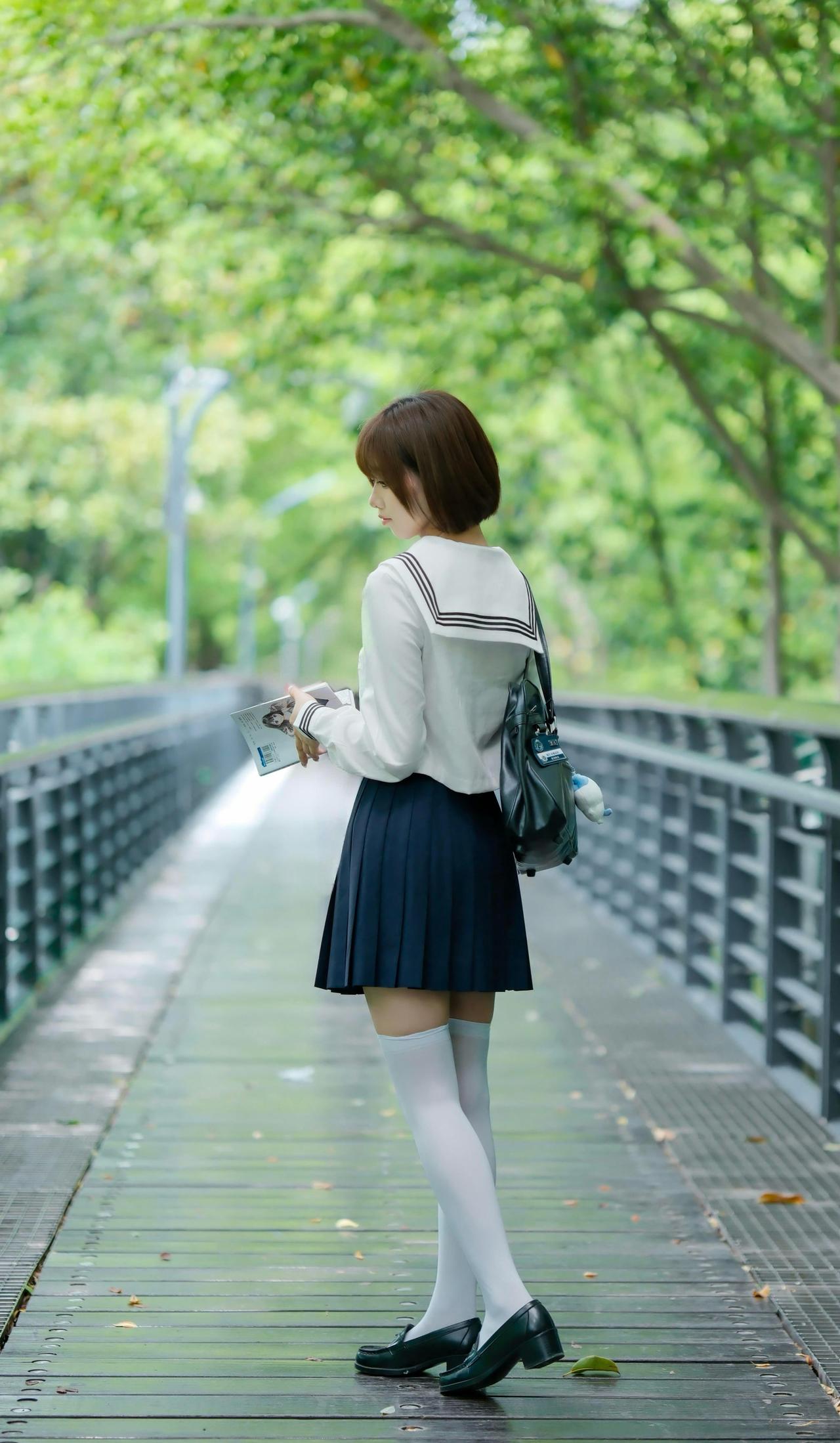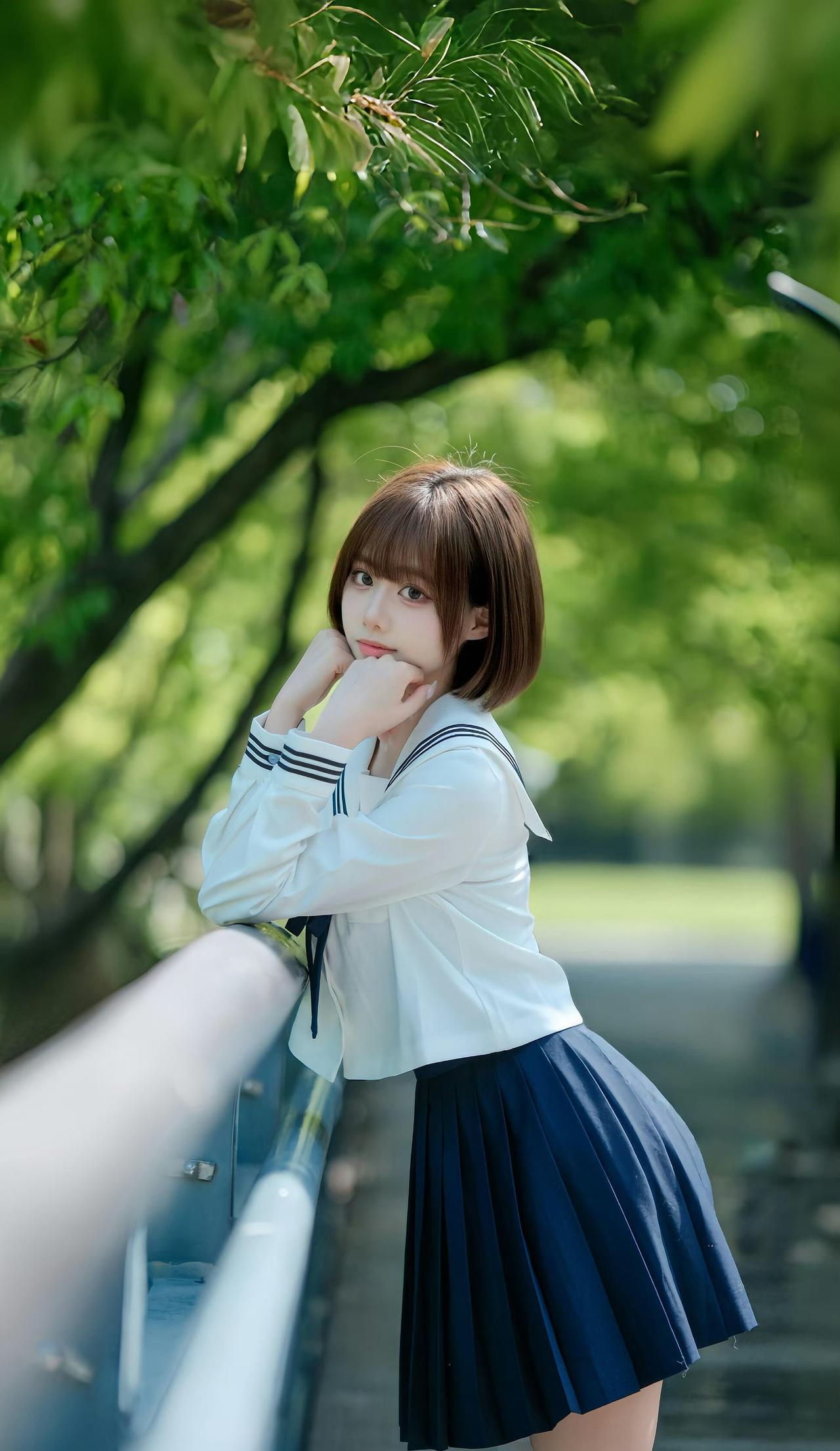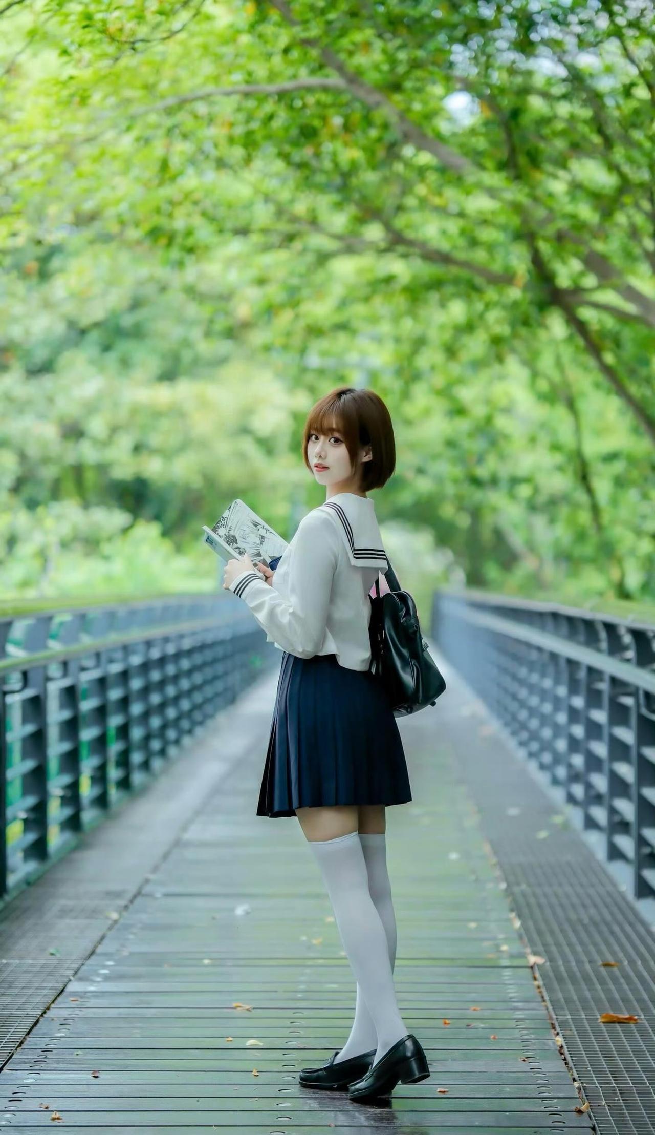 夏风穿过林荫道,翻开书页的瞬间,JK制服的裙摆也跟着轻轻摇晃。耳机里的歌还在循环,阳光在栏杆上洒下斑驳的光斑,好像青春里所有温柔的时刻,都被定格在了这条路上。jk风裙子