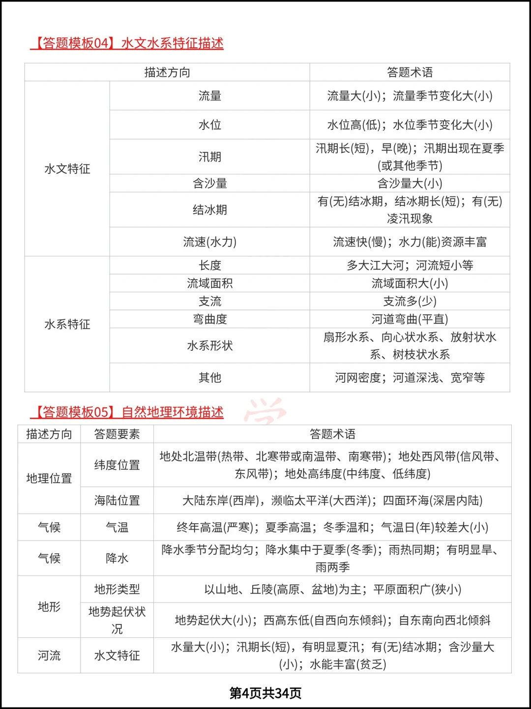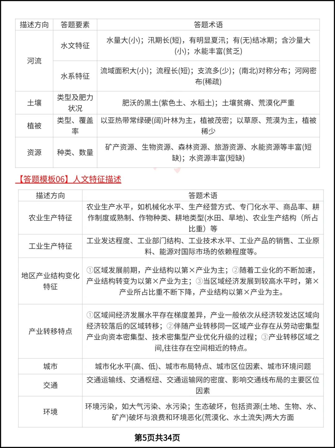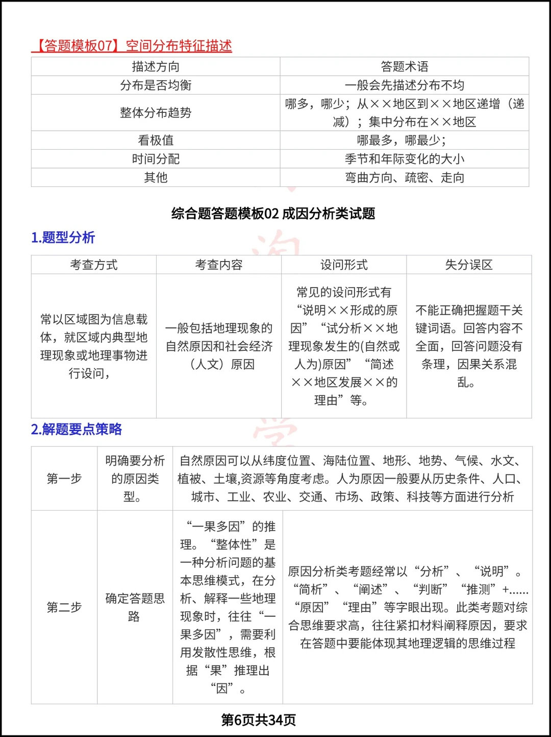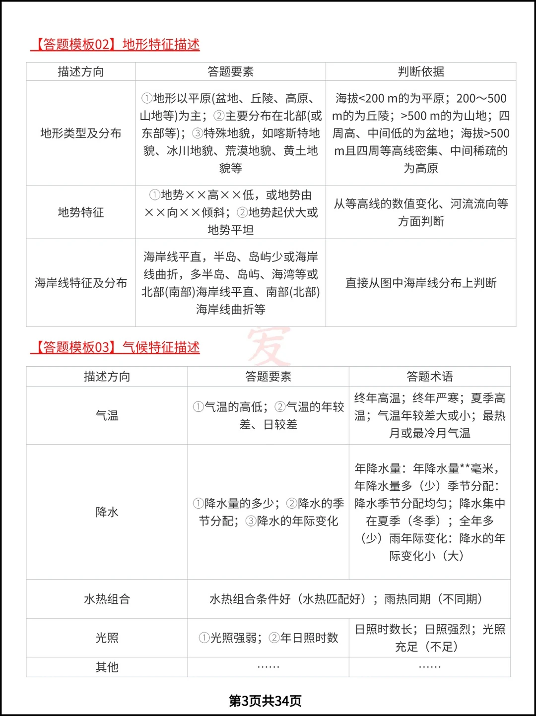 高考地理必会的8类综合题24个答题模板