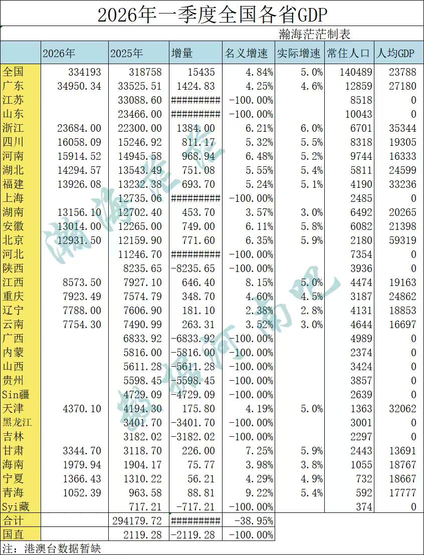 19个省市2026年一季度GDP出炉:福建上海差距缩小、湖南安徽差距缩小、辽宁云