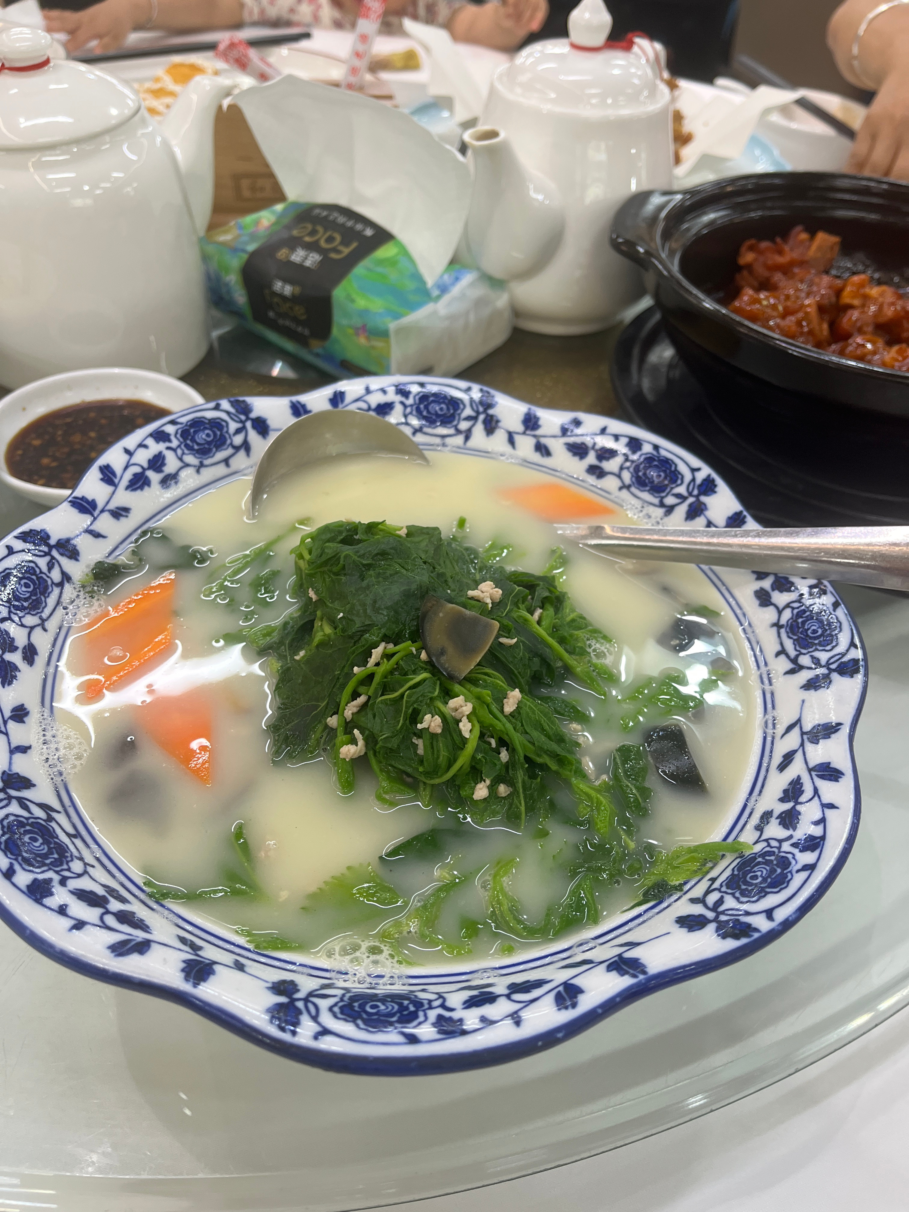 上汤桑叶🥗这个好好吃哦😋汤也好喝!加了很多皮蛋