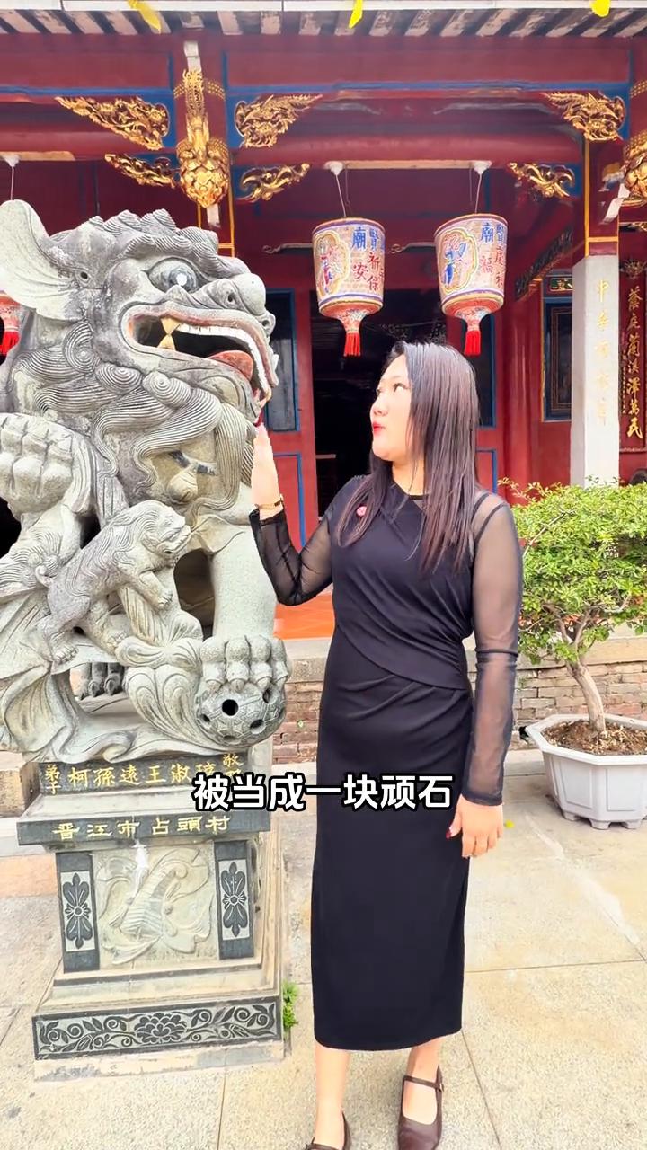 你们算算,这座庙比宋朝的南门古桥还早了300多年。你看这座石狮子是不是跟你想的不一样?前方后圆,柱体直立,线条简洁,一点都不威风。但它是唐朝的,你知道它以前在哪吗?在戏台沟沿边,被当成一块顽石,躺了几百年没人理。
