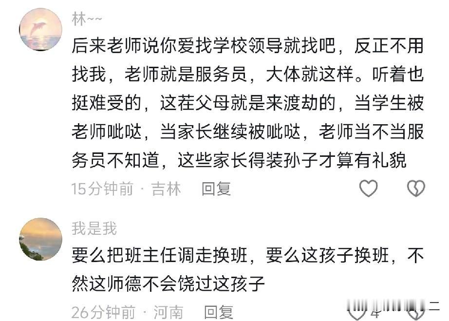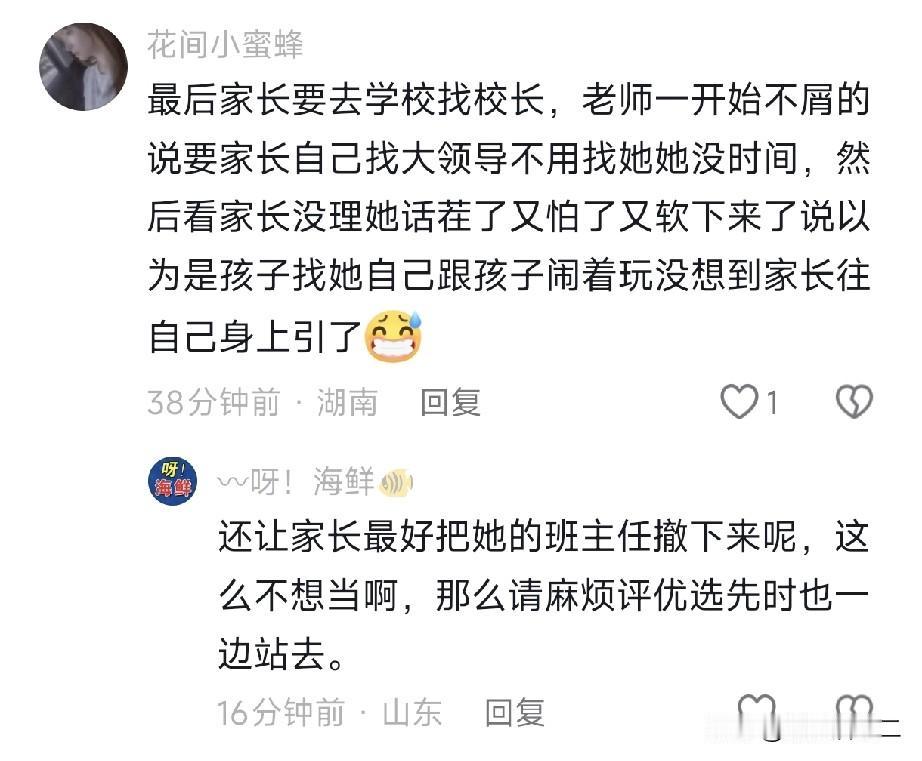 也有网友劝这位家长抓紧让孩子转班级,与班主任这么一闹,难免给自己孩子穿小鞋。