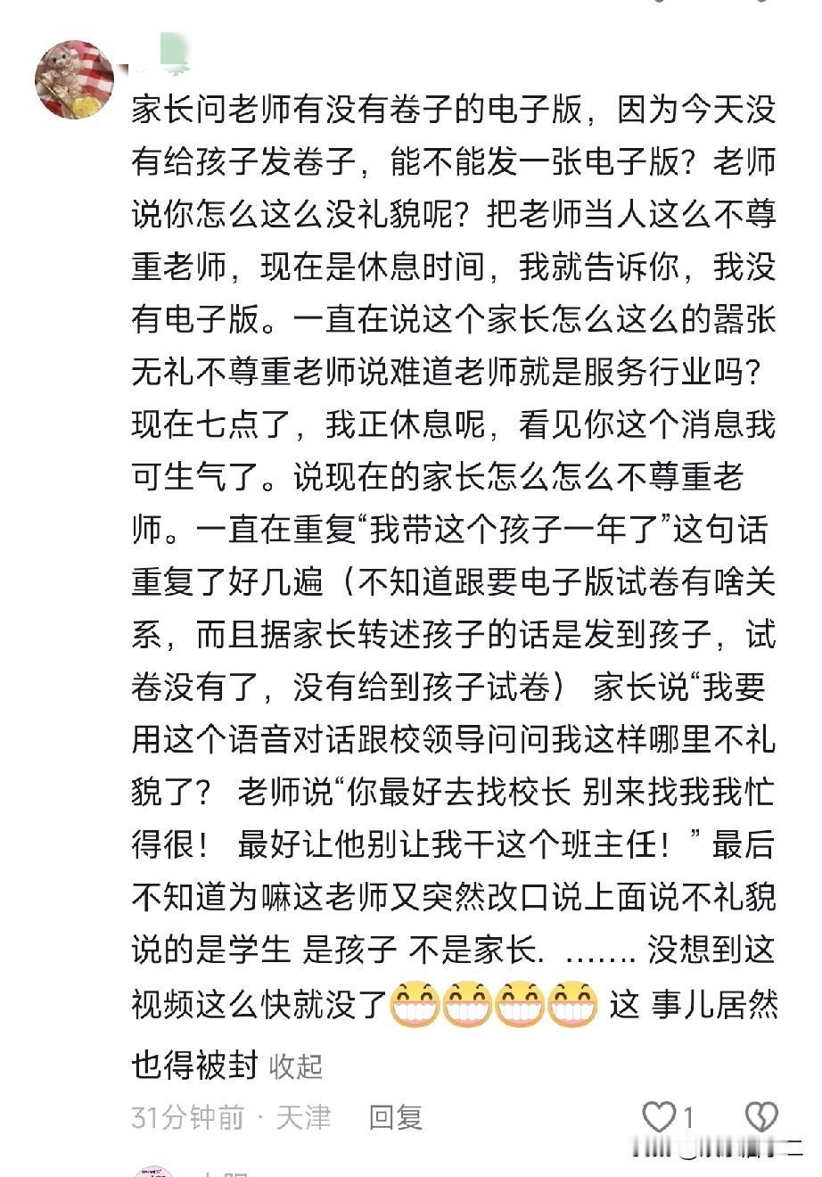 说完这话,网友们都懵了,仔细听家长的话也没有什么不妥之处,不至于让老师这么生气,还冷嘲热讽的。