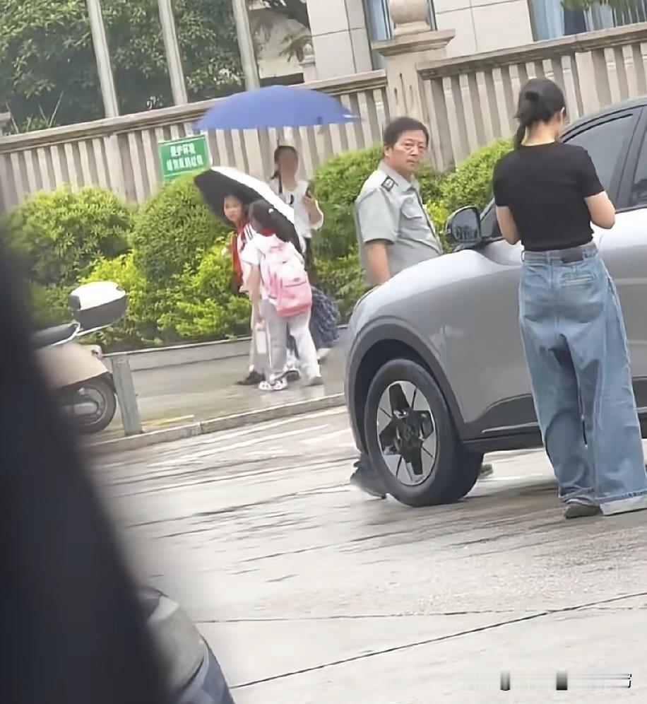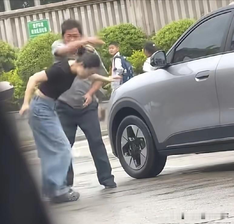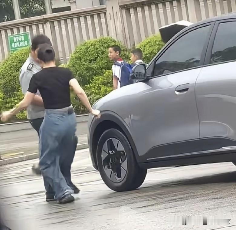 放学高峰校门口堵成一锅粥,这女的倒好,车往路边一横就不管了。保安大叔好心好意上去劝挪车,态度多客气啊,结果呢?人家转身要走,她倒追上去抬腿就是一脚!